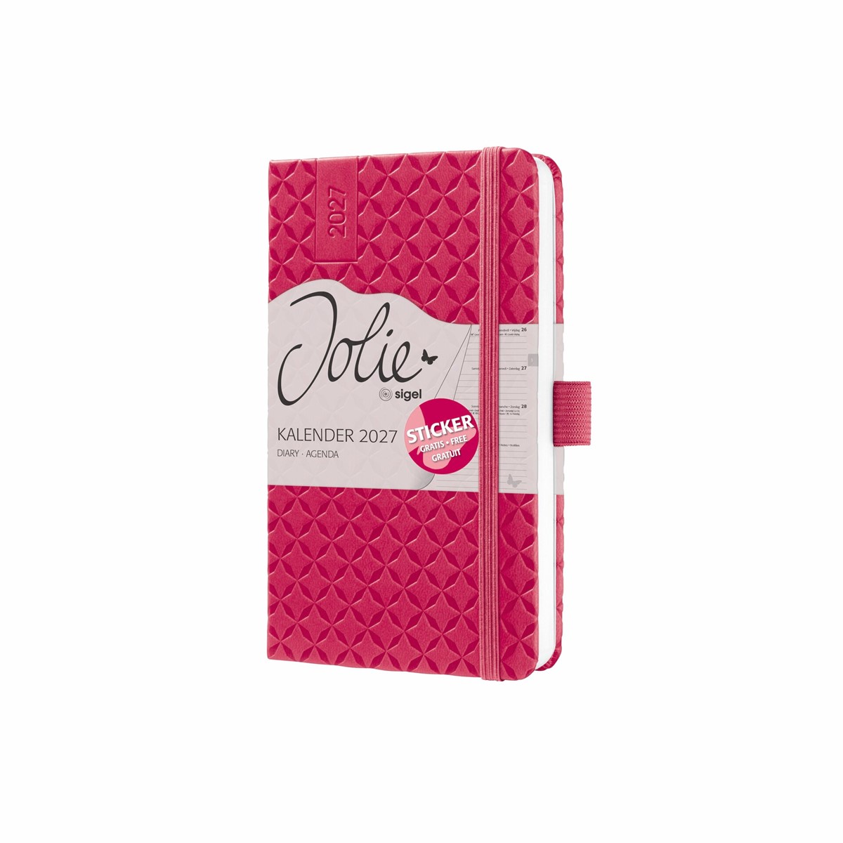 Immer stylisch organisiert - mit dem angesagten Jolie Wochenkalender für 2027 (Kalendarium: 2 Seiten = 1 Woche, DE/GB/FR/NL) im Format ca. A6 (9,50 x 15 x 1,60 cm) mit 174 Seiten (davon 12 Blätter perforiert). Der stabile Hardcover-Einband in pink garantiert Stabilität beim Schreiben.