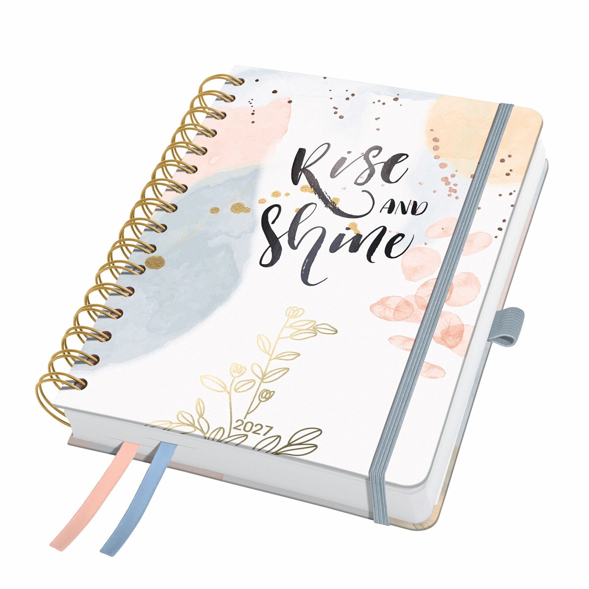 • Viele Features: Robustes Cover, hochwertige Metallic-Ringbindung, praktisches Einsteckfach, 2 Lesebänder, Gummibandverschluss, Stiftschlaufe