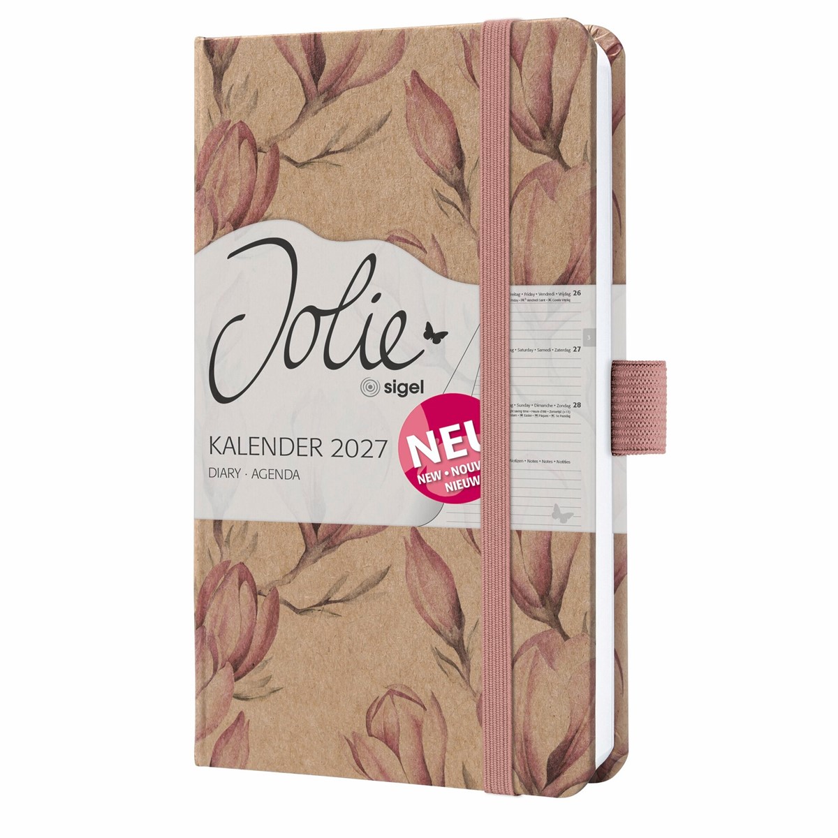 Immer stylisch organisiert - mit dem angesagten Jolie Wochenkalender "Magnolia Dreams" für 2027 (Kalendarium: 2 Seiten = 1 Woche, DE/EN/FR/NL) im Format ca. A6 (9,50 x 15 x 1,60 cm) mit 174 Seiten (davon 12 Blätter perforiert). Der stabile Hardcover-Einband in braun/rosa/weiß garantiert Stabilität beim Schreiben.