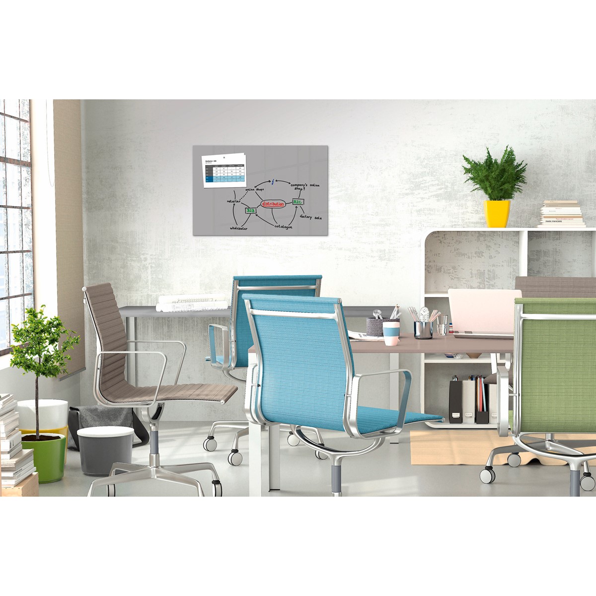• Modernes Allroundtalent: Die Glas-Magnettafel Be!Board zum Beschreiben und Anheften von Notizen - ideal für kleine Büros und zu Hause.