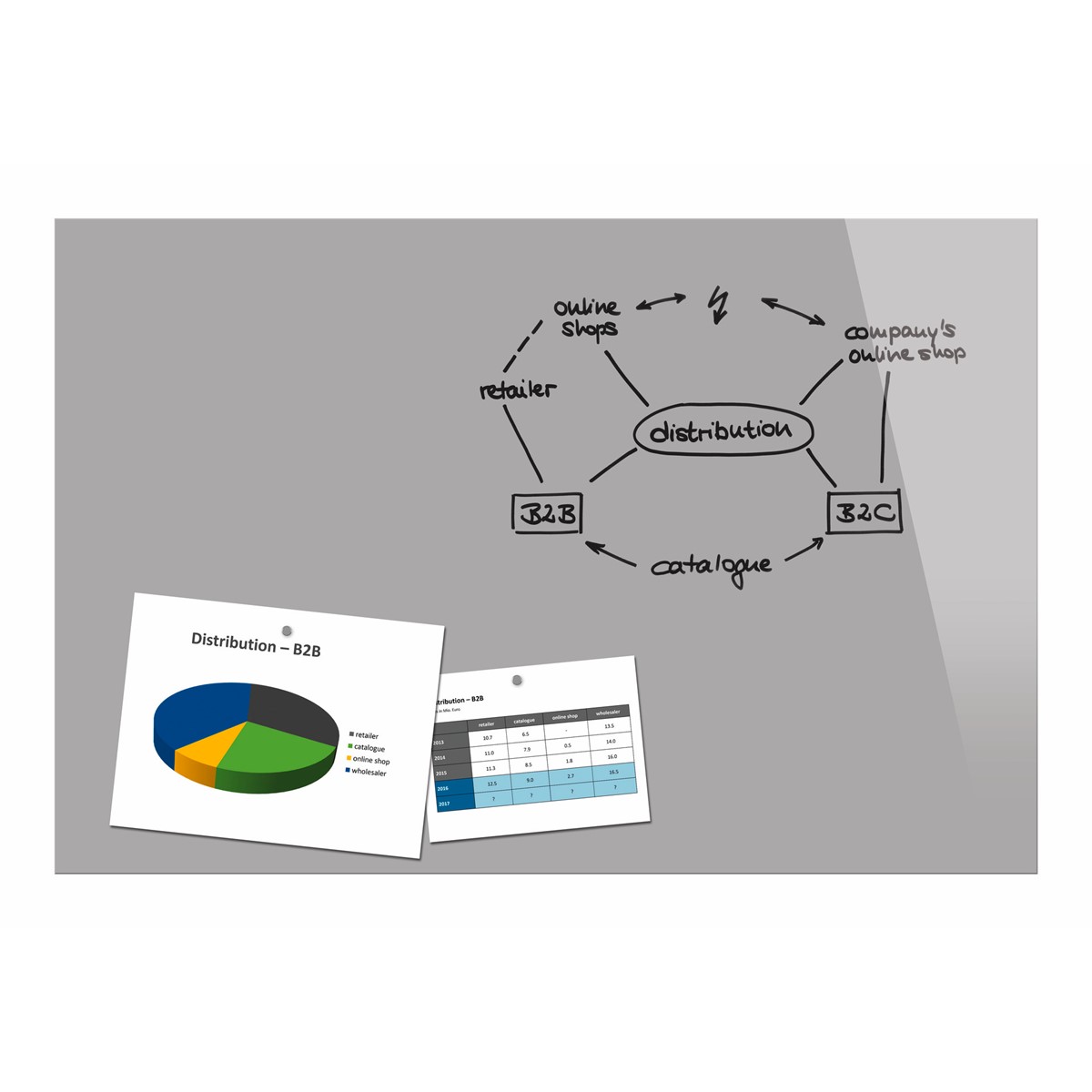 Notizen können mit allen handelsüblichen Board- und Kreidemarkern aufgeschrieben und wieder leicht entfernt werden.