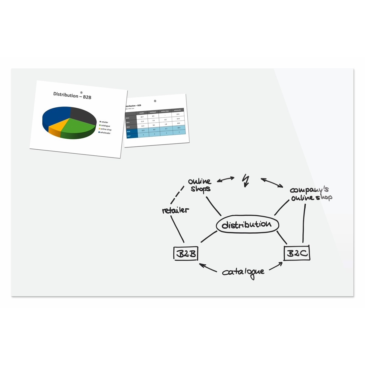 Ob zu Hause im Flur, in der Küche oder im Homeoffice bzw. in kleinen Büros: Diese Glas-Magnettafel mit elegant glänzender Oberfläche ist perfekt zum Beschreiben und Anheften von Zetteln.