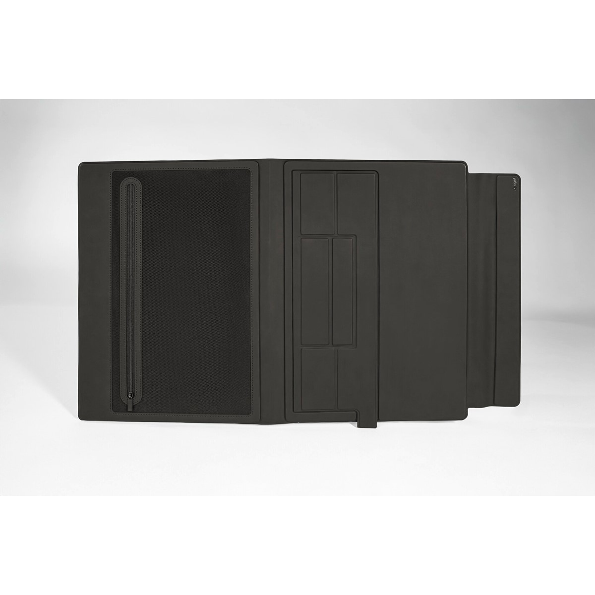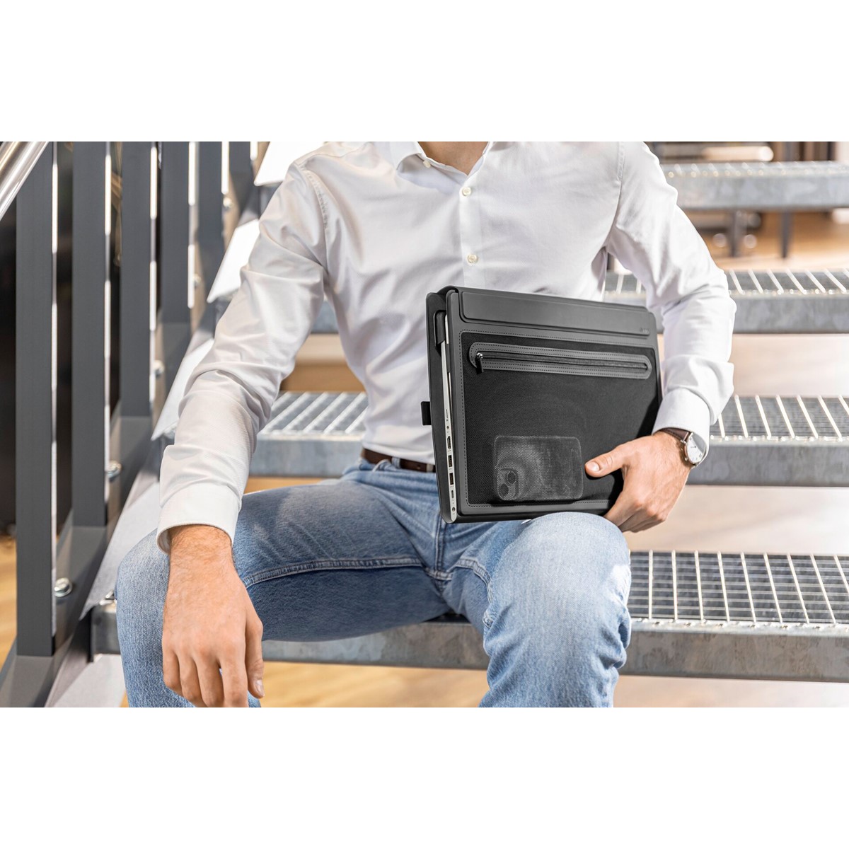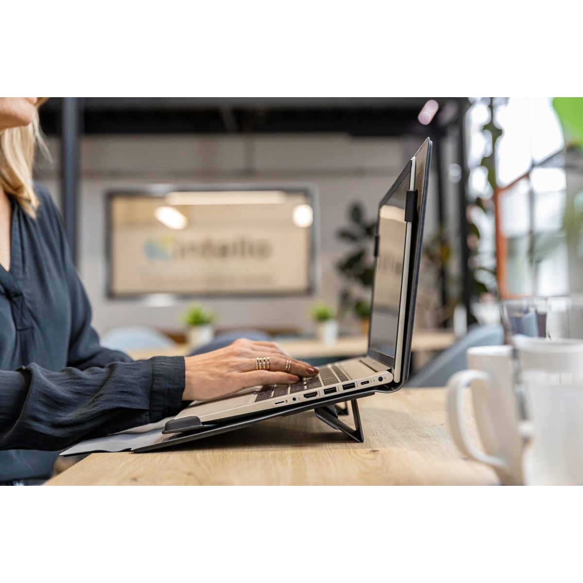 Einfach aufstellen und loslegen: am Schreibtisch im Büro oder Homeoffice, im Meetingraum, unterwegs im Zug oder wo immer Sie mobil arbeiten möchten. Nach Benutzung verschließt eine Klappe mit verdecktem Magnetverschluss das Case zuverlässig.