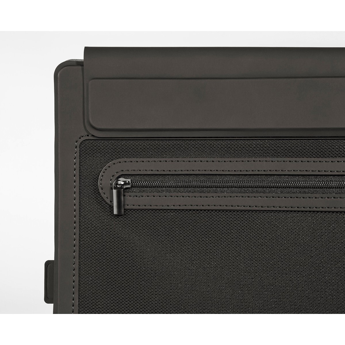Ein flaches Einsteckfach außen aus Nylon-Mesh mit Reißverschluss bietet zusätzlichen Platz für die wichtigsten Dokumente sowie Kleinutensilien.