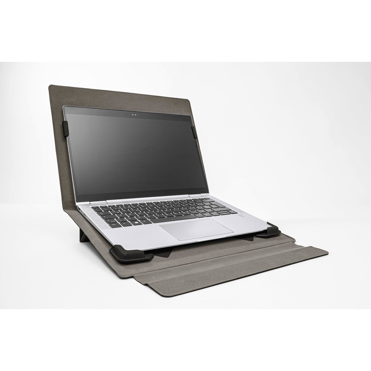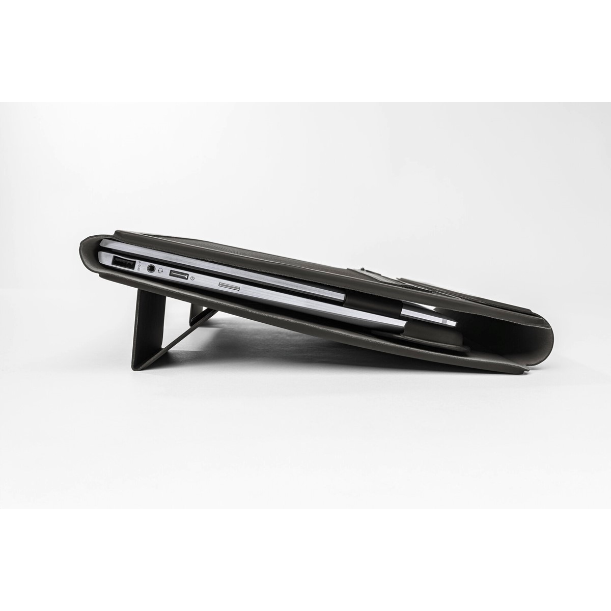 Das Laptop Case hat einen stabilen Einband aus PU, um Ihr Gerät vor Schmutz und Abnutzung zu schützen, gleichzeitig kann es als Laptopständer genutzt werden, ohne dass der Laptop entnommen werden muss. Eine eingearbeitete Fiberglasplatte verstärkt das Case und dient gleichzeitig als Hitzschutz für den Laptop.