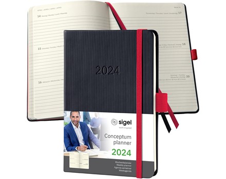 • Mit dem Conceptum Kalender sind Sie im Arbeitsalltag immer up-to-date. Edles Design verbindet sich hier mit praktischen Funktionen und begleitet Sie business-like durch das Jahr.