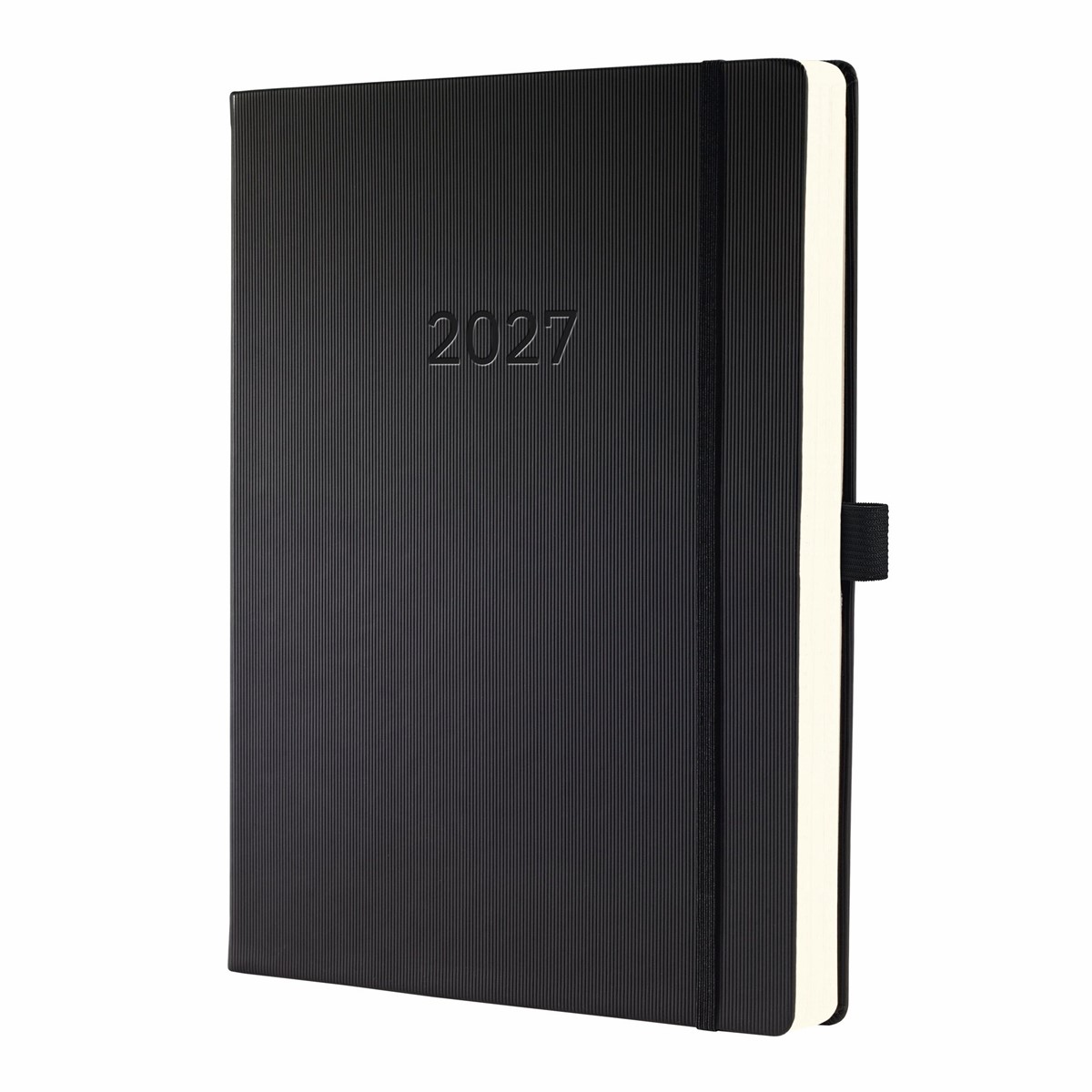 Die Oberfläche mit gerillter Softwave-Struktur sorgt für eine angenehme Haptik und macht den Terminkalender zum eleganten Begleiter.