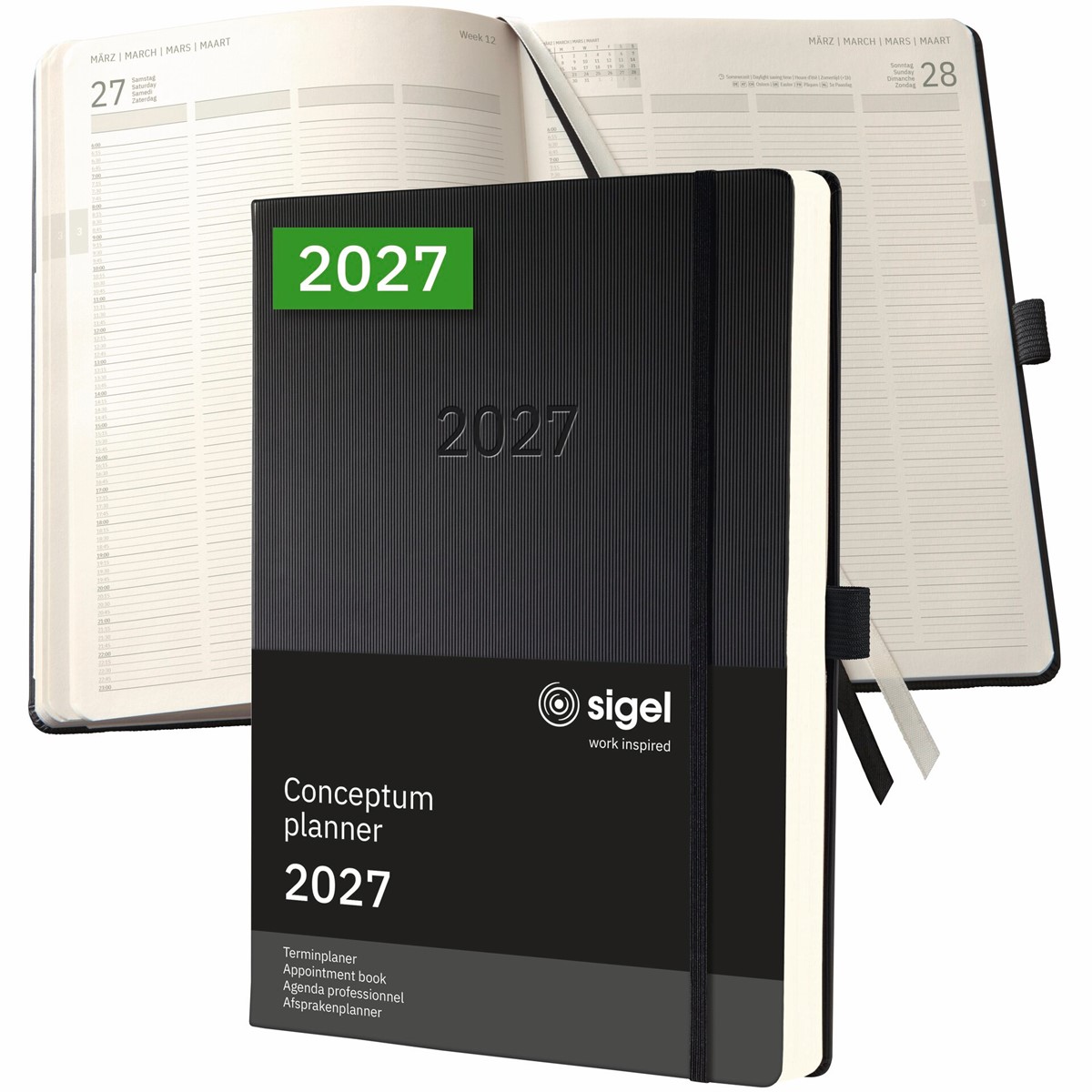 Immer stilsicher organisiert - mit dem eleganten Terminplaner Conceptum für 2027 (Kalendarium: 1 Seite = 1 Tag, DE/GB/FR/NL) im Format A4+ (22,50 x 31,50 x 3,50 cm) mit 480 Seiten (davon 18 Blätter perforiert). Der stabile Hardcover-Einband in schwarz garantiert Stabilität beim Schreiben.