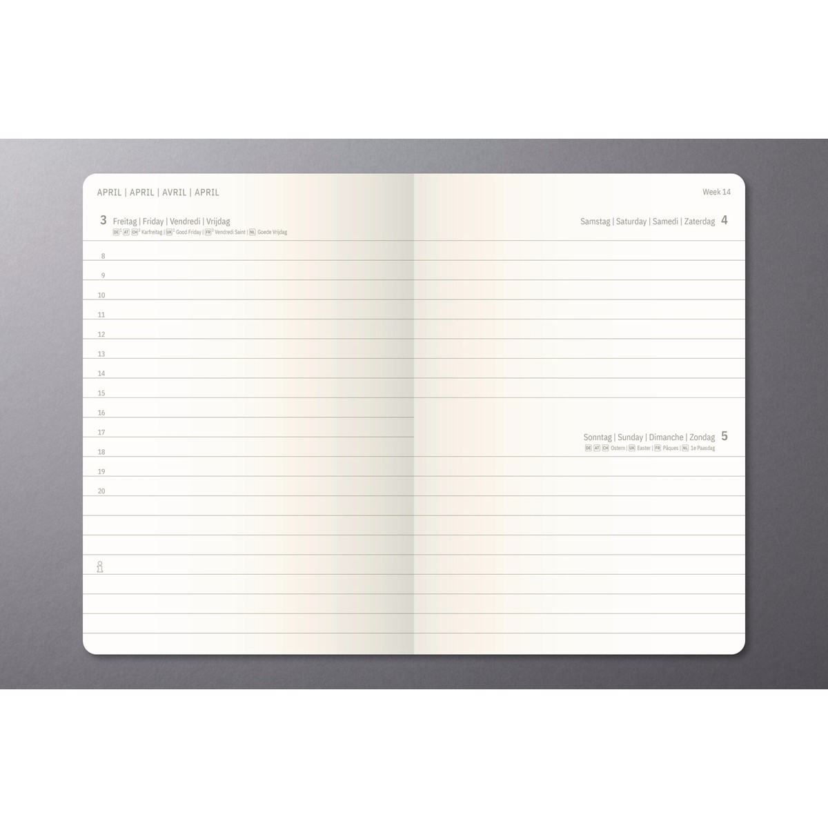 Die Oberfläche mit gerillter Softwave-Struktur sorgt für eine angenehme Haptik und macht den Terminkalender zum eleganten Begleiter.