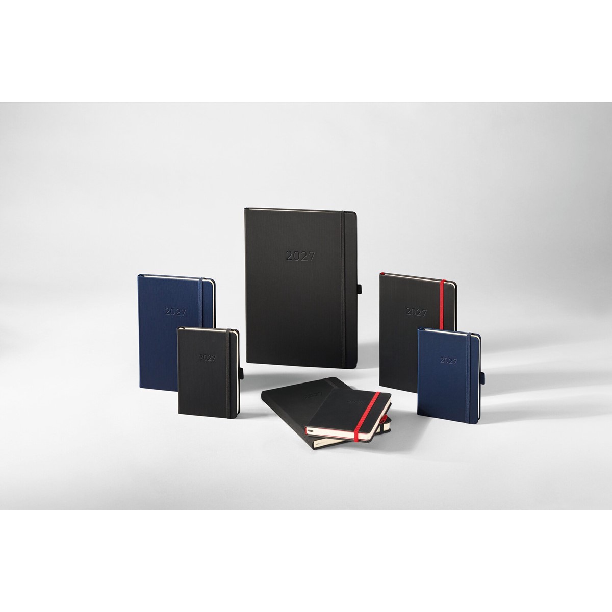 Viele hilfreiche Infoseiten und praktische Funktionen werden Sie überzeugen: Z. B. haben Sie mit der dehnbaren Stiftschlaufe immer einen passenden Stift zur Hand. Notizen können Sie dank perforierter Notizblätter einfach weitergeben.
