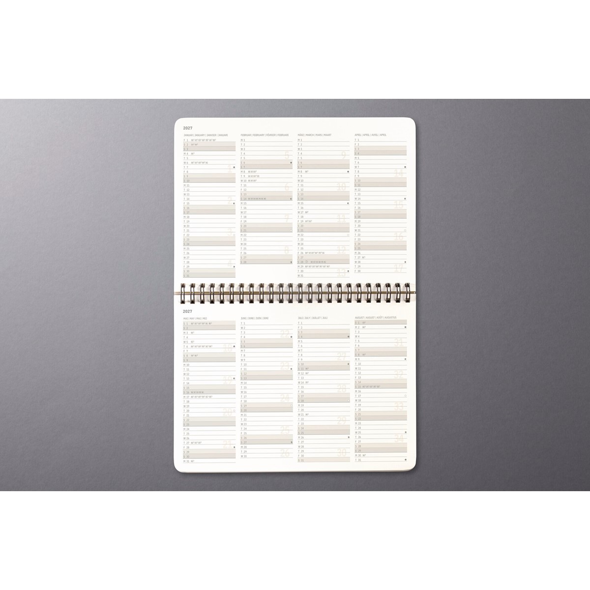 Mit der Ringösenbindung aus Metall lässt sich der Kalender mit seiner praktischen Aufstellfunktion liegend oder stehend einsetzen.