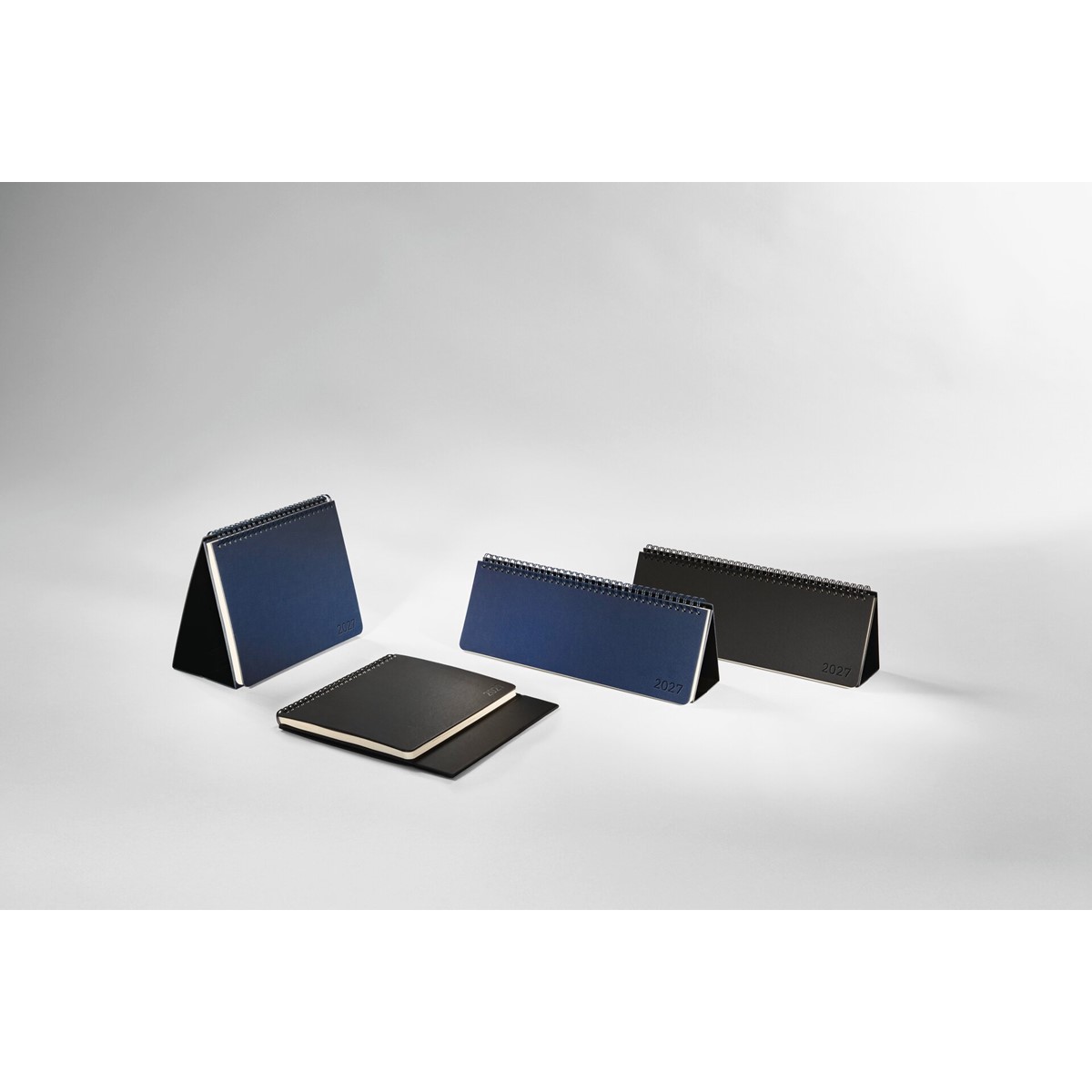 Immer stilsicher organisiert - mit dem Tischkalender für 2027 (Kalendarium: 2 Seiten = unten Woche / oben Notizseite, DE/GB/FR/NL), dunkelblau, mit 144 Seiten. Zusätzliche Wochenplanungs- und Notizseiten ermöglichen Ihnen bei dem Monatskalender im A5-Querformat (21,30 x 22 x 1,80 cm) eine übersichtliche Terminplanung.