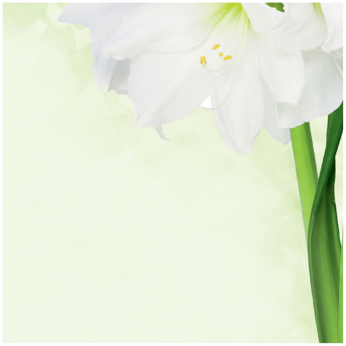 Motivpapier dezent grün bedruckt und mit zwei weißen Amaryllis (hochwertiger Offset-Druck), einseitig 4-farbig bedruckt