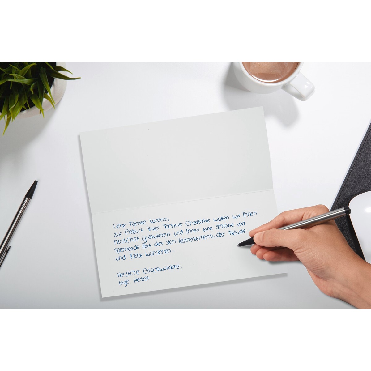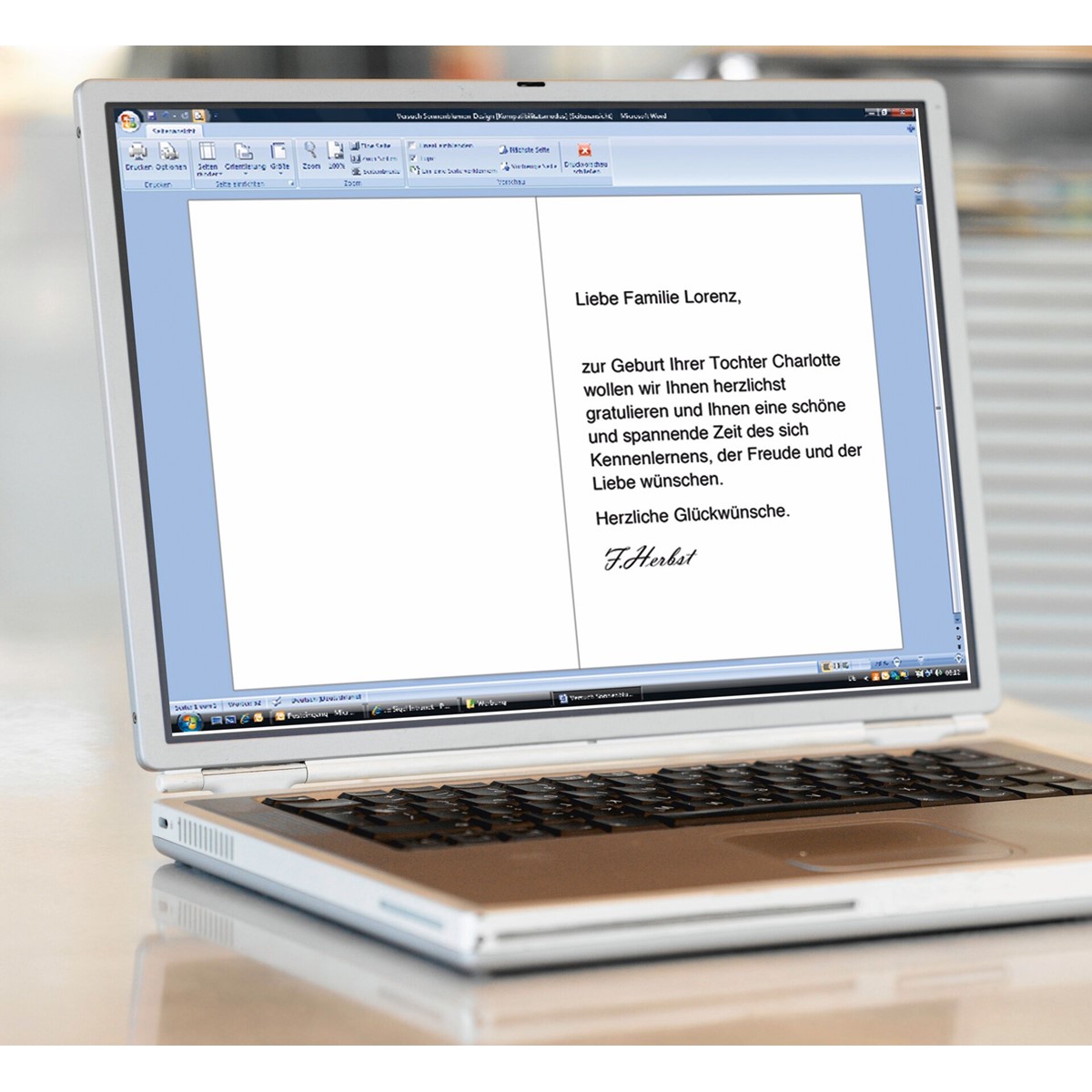 Die Motiv-Karte lässt sich ganz einfach mit dem PC gestalten und im offenen Format bedrucken oder per Hand beschriften. Keine Abhängigkeit von Druckereien, geringe Auflagen ganz nach Bedarf Vorgerillt für einfaches Falten.