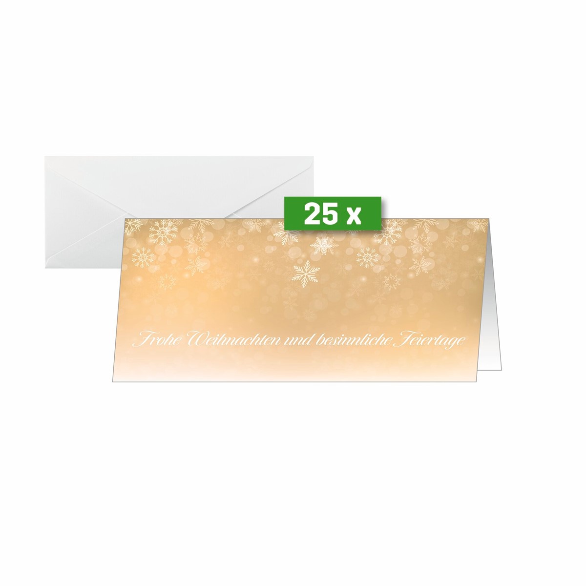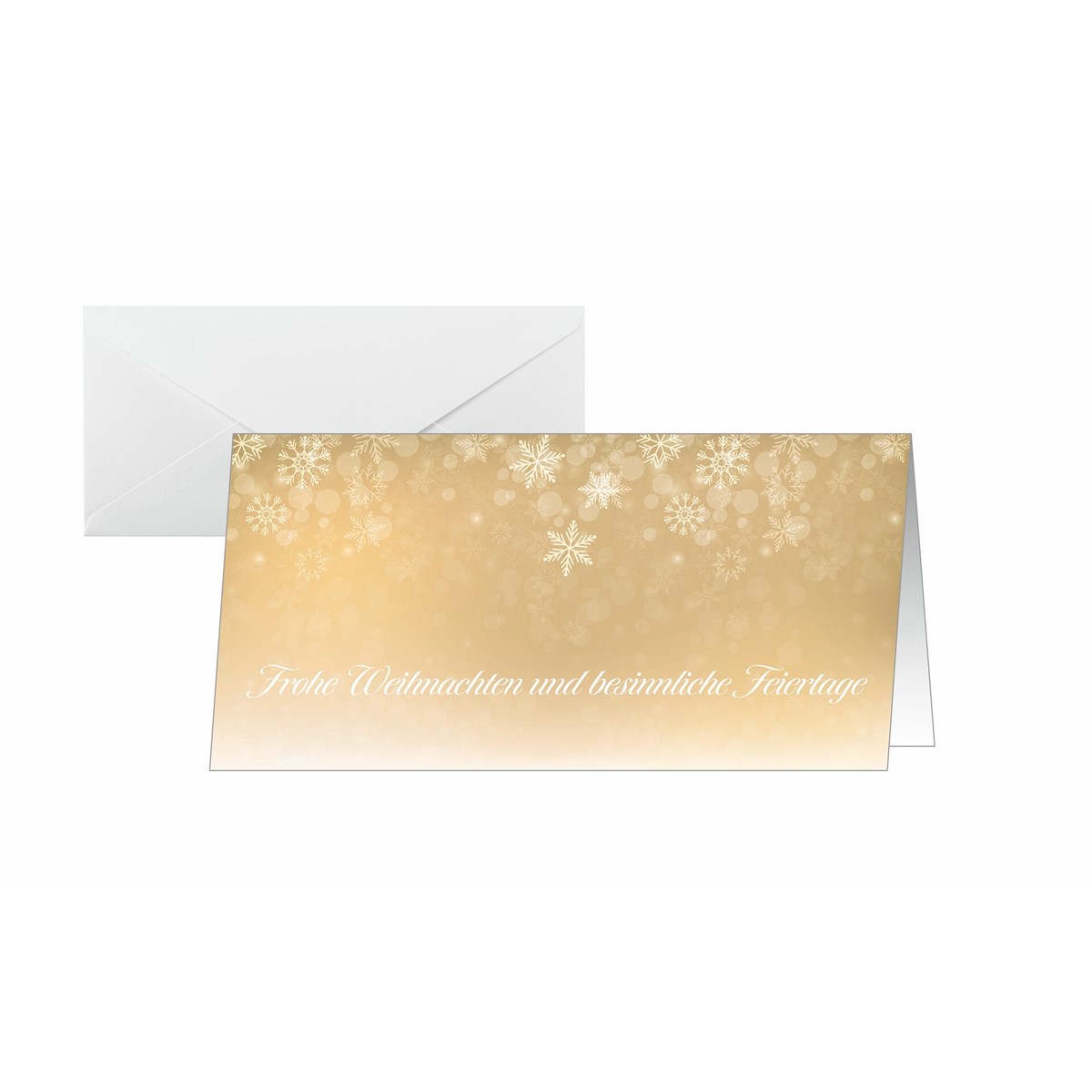 Mit einmaligem Motiv und ruck-zuck bedruckt: Weihnachts-Karten "Golden Christmas Night" (Motiv: Schneeflocken in gold) im Format DIN lang (250 g/m², 25 Karten, Karte: Weißkarton - Umschlag: Weißpapier).