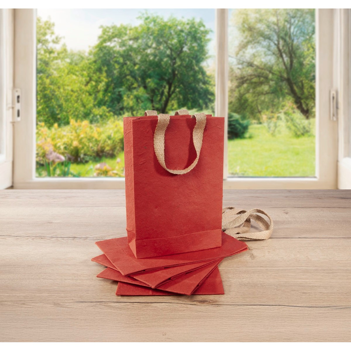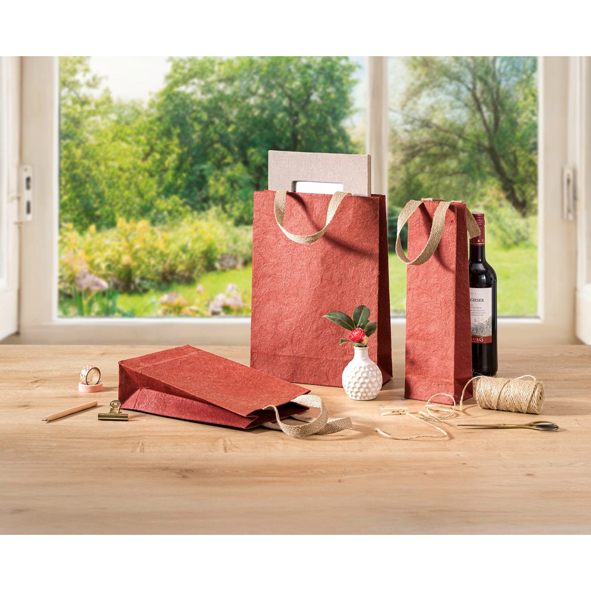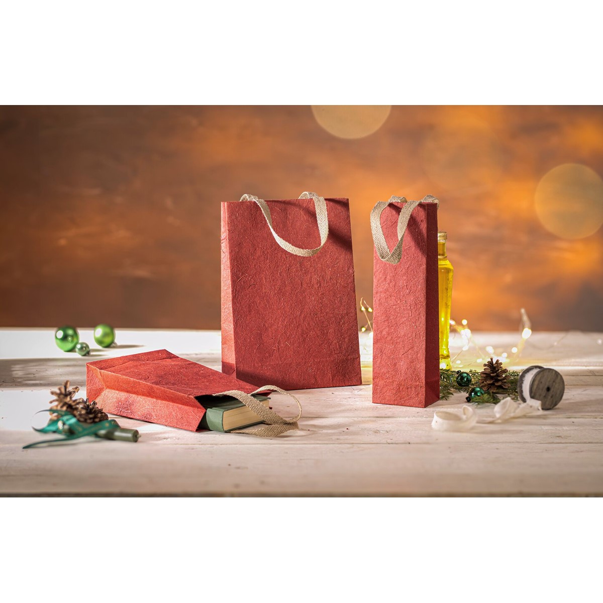 Geschenktasche small "Red Coco" aus Jutefaserpapier mit Kokosfasermusterung im Format 19 x 28 x 8 cm in rot.