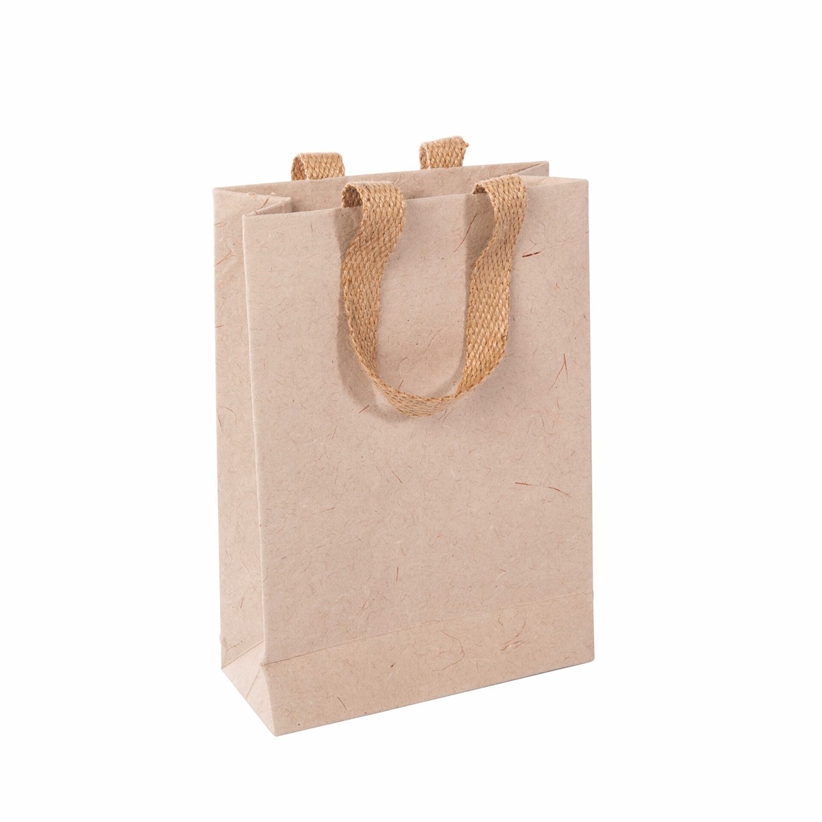 Geschenktasche small "Natural Red Coco" aus Jutefaserpapier mit Kokosfasermusterung im Format 19 x 28 x 8 cm in beige/rot.
