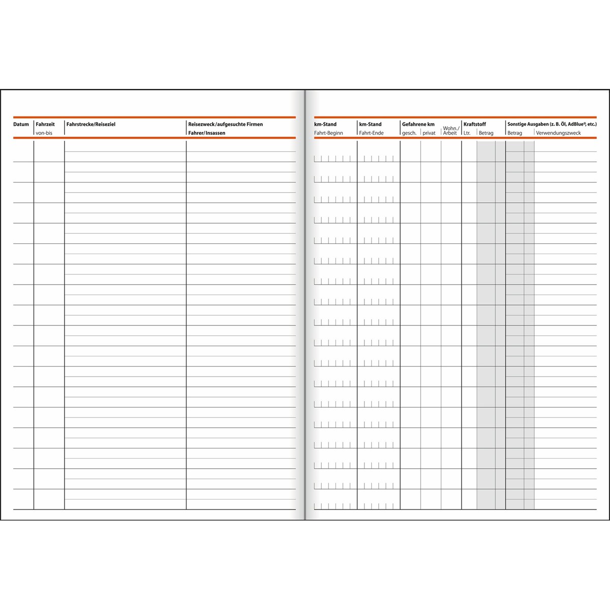 Mit ausführlichen Hinweisen zur korrekten Führung des Fahrtenbuches. Für ca. 540 Fahrten verwendbar.