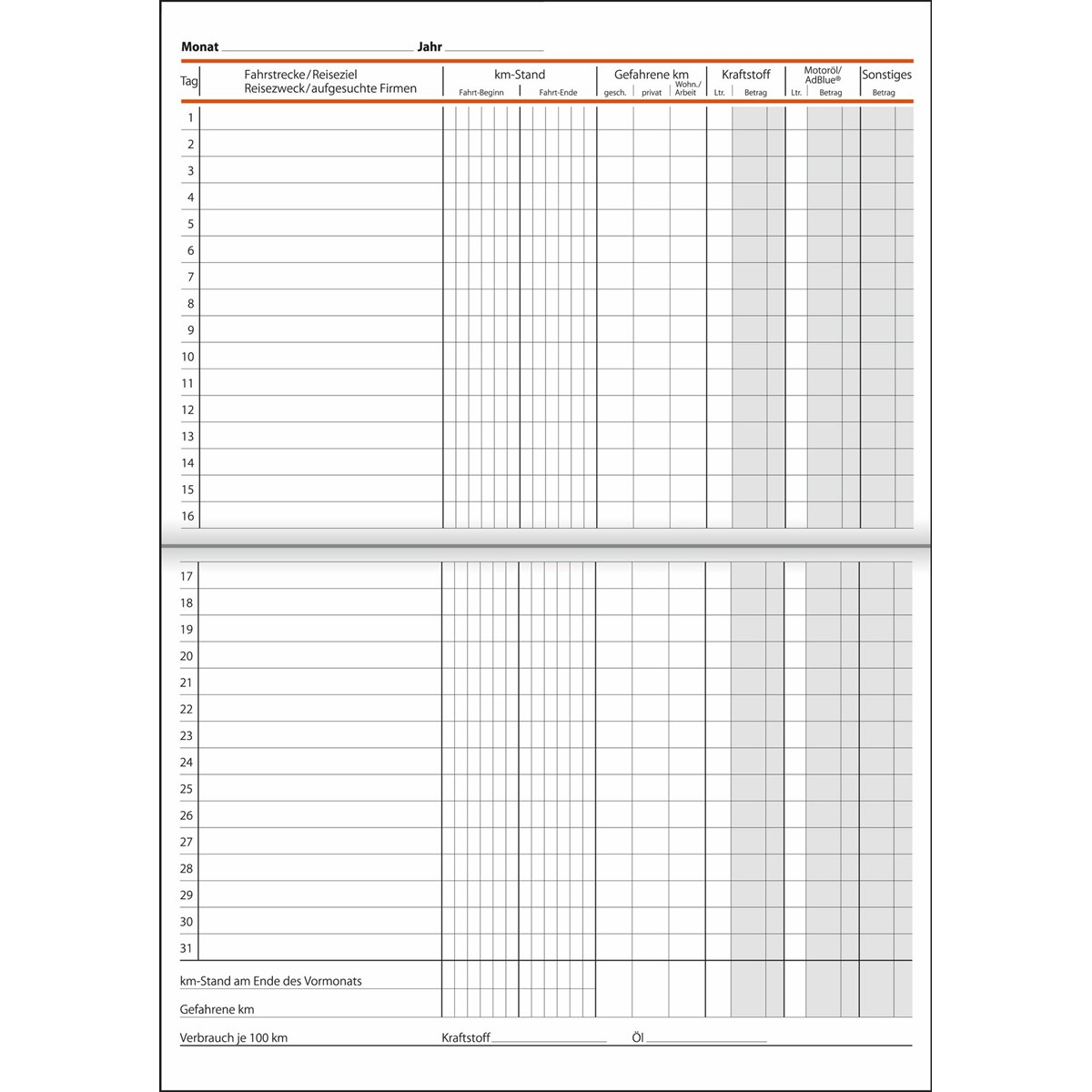 Fahrtenbuch für PKW und LKW im Format DIN A5 mit 32 Blatt. FSC® zertifiziert, aktuell und rechtssicher, für den steuerlich anerkannten Nachweis durch exakte Trennung geschäftlicher und privater Fahrten geeignet. Übersichtliche Monatseinteilung im Querformat für ca. 28 Monate. Mit vielen praktischen Extras wie z. B. Kraftstoffverbrauchstabelle, Jahreskosten- und Jahreskilometeraufstellung. Mit ausführlichen Hinweisen zur korrekten Führung des Fahrtenbuches
