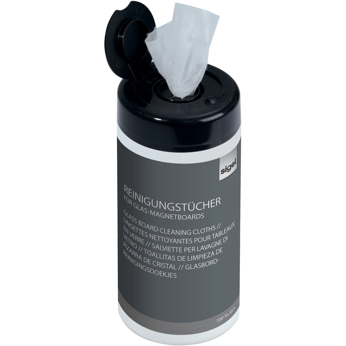 Die wiederverschließbare Spenderdose macht die Reinigungstücher schnell griffbereit.
