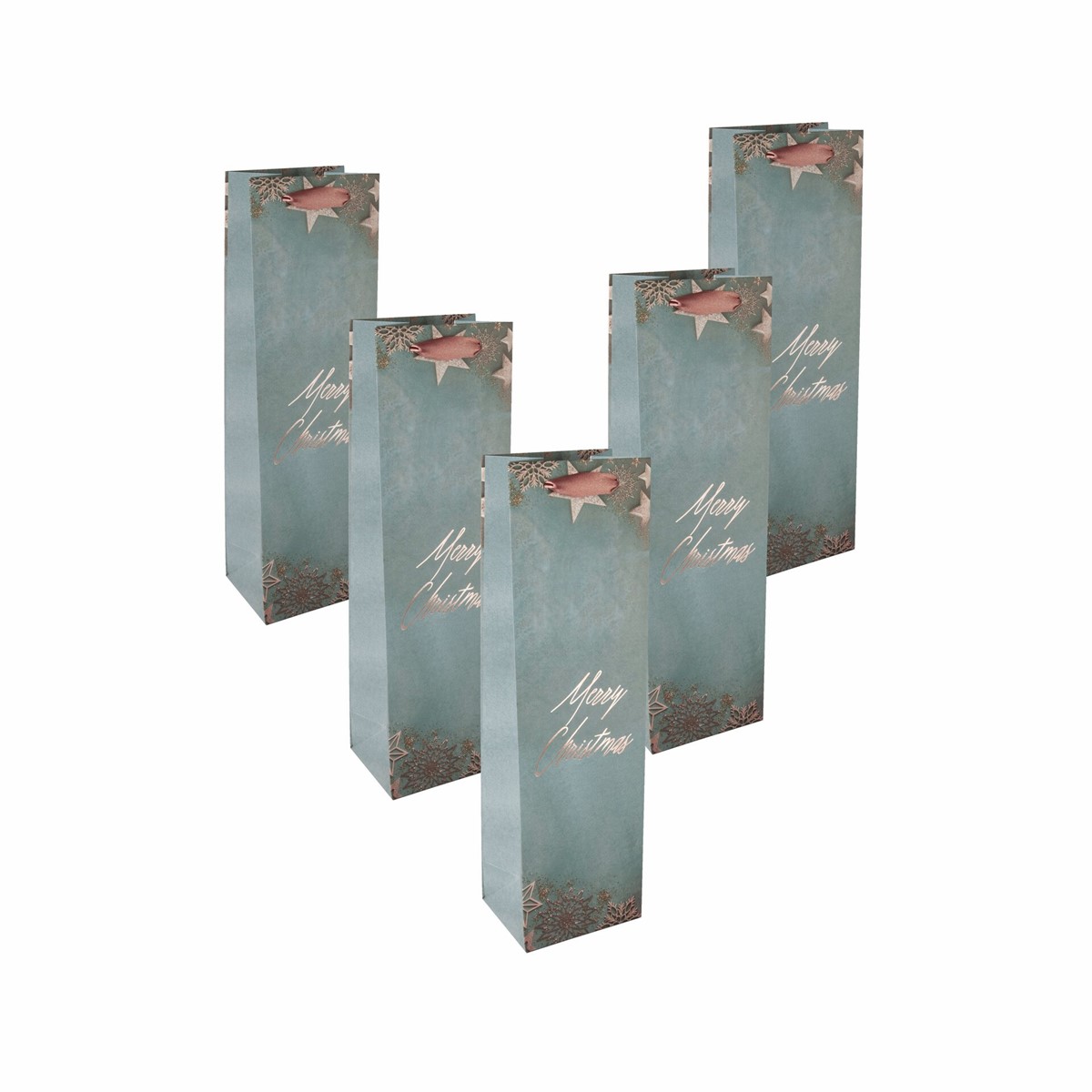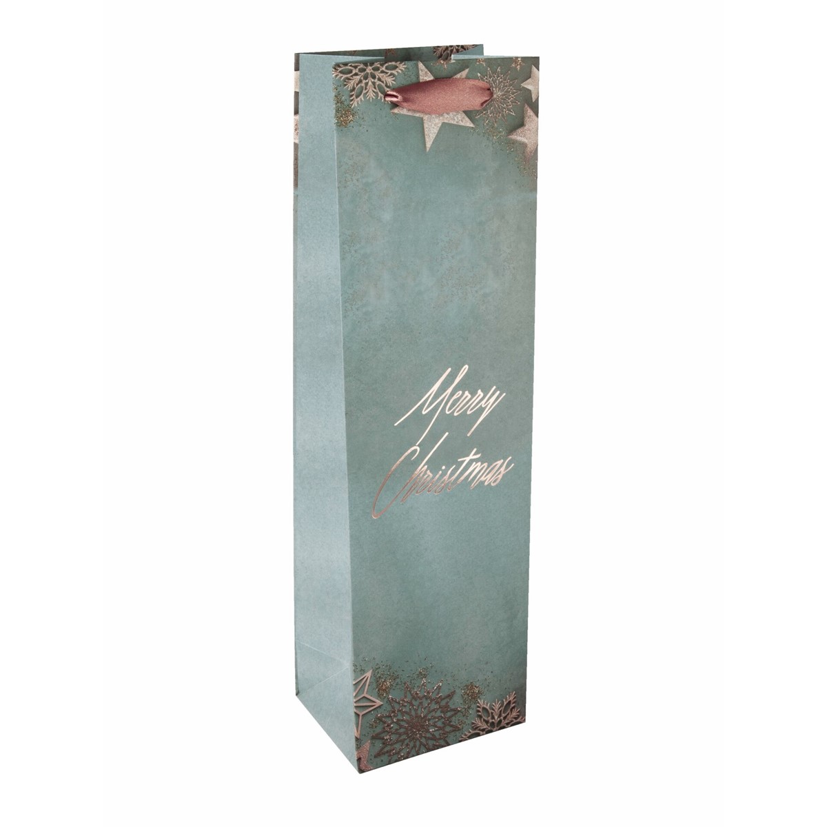 • Geschenktasche Flasche "Glamorous Christmas" aus Papier matt mit Glanzfolie im Format 10 x 35 x 8 cm in blau/kupfer.