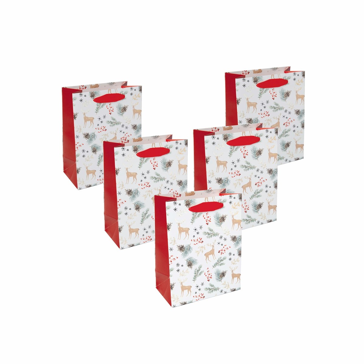 Geschenktasche small "Christmas motifs watercolor" aus Papier matt mit Glanzfolie im Format 18 x 23 x 10 cm in weiß/gold/rot.