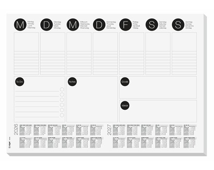 Qualität made in Germany - die Papier-Schreibunterlage "Weekly Planner" mit Kalendarium 2026/2027 (DE/EN/FR/NL) im Format A3 (42 x 29,70 x 0,50 cm) bietet Schutz, mit 30 Blatt viel Platz zum Beschreiben und ist sehr langlebig.