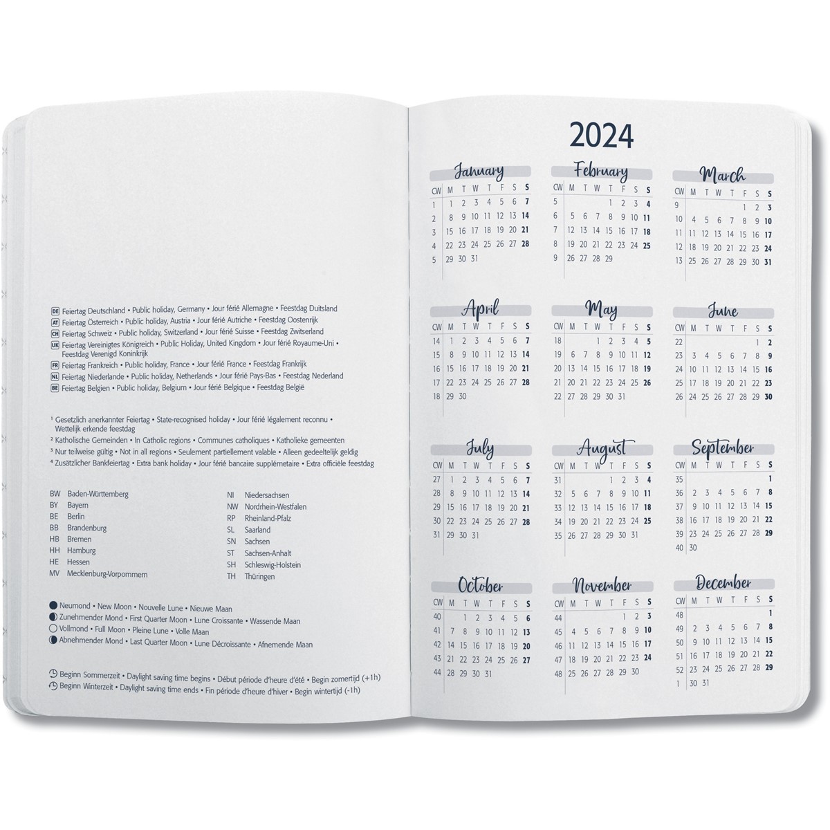 Immer stylisch organisiert - mit dem angesagten Jolie Wochenkalender für 2024 (Kalendarium: 2 Seiten = 1 Woche, DE/GB/FR/NL) im Format ca. A6 (9,5 x 15 cm) mit 174 Seiten (davon 12 Blätter perforiert).