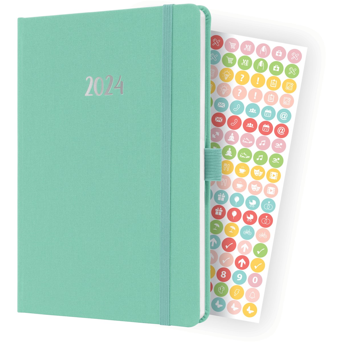 Immer stylisch organisiert - mit dem angesagten Jolie Wochenkalender "mighty mint" für 2024 (Kalendarium: 2 Seiten = 1 Woche, DE/GB/FR/NL) im Format ca. A5 (13,5 x 20,3 cm) mit 174 Seiten (davon 12 Blätter perforiert).