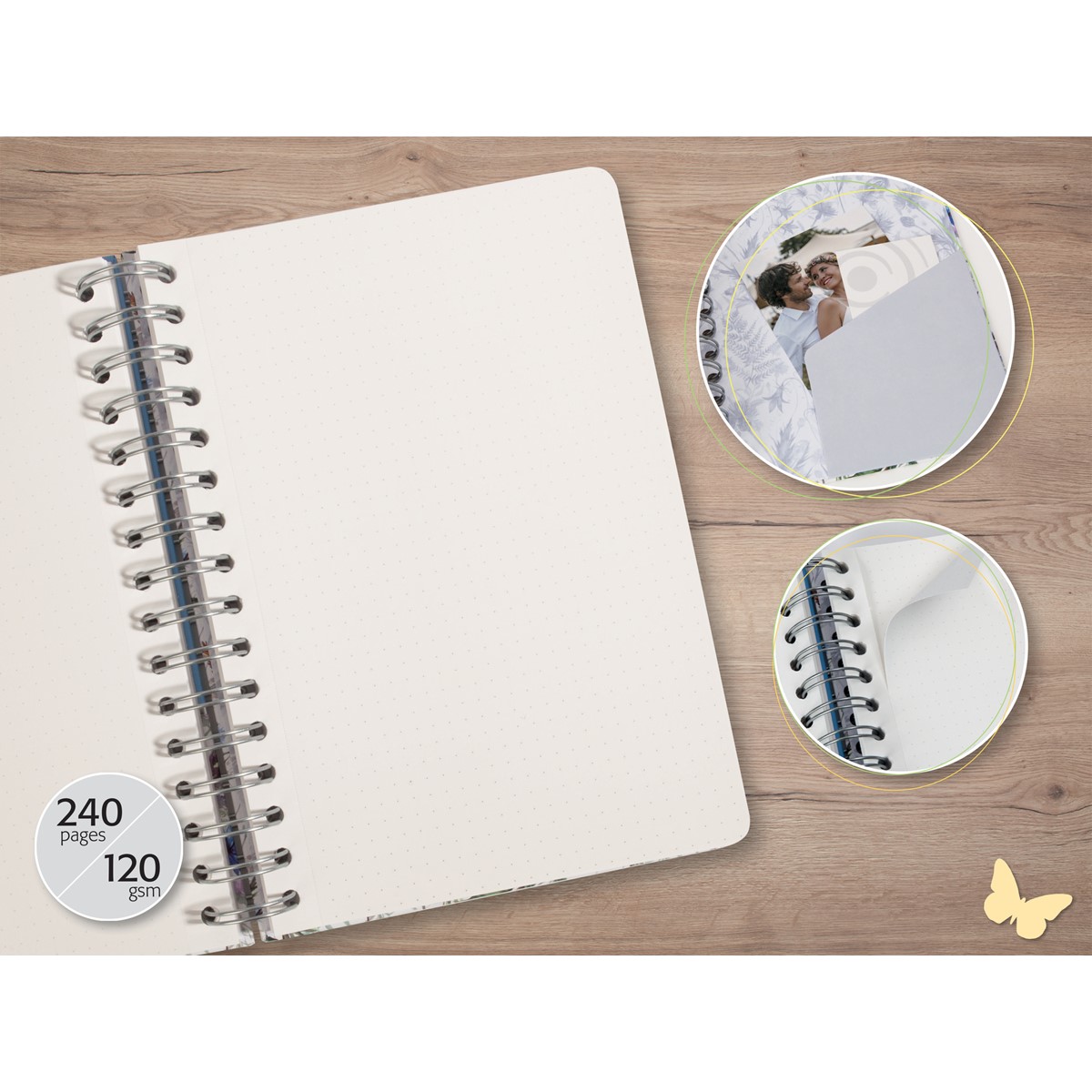Werden Sie Handlettering-Profi - mit dem schönen Jolie Spiral-Notizbuch Heavenly Leaves im Format ca. A5 (16,8 x 21,5 cm) mit 240 Seiten, Dot-Lineatur (punktkariert), 120 g/m², alle Blätter perforiert.