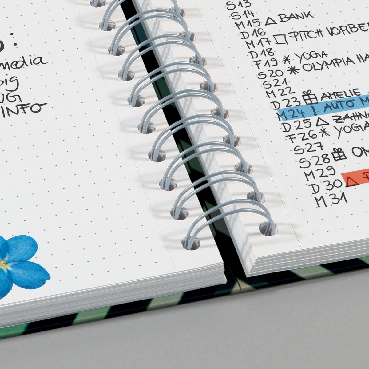 Sehr langlebig durch robustes Cover und hochwertige Metallic-Ringbindung
