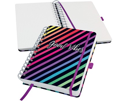Werden Sie Handlettering-Profi - mit dem schönen Jolie Spiral-Notizbuch Dark Rainbow Vibes im Format ca. A5 (16,8 x 21,5 cm) mit 240 Seiten (Dot-Lineatur (punktkariert), 120 g/m², alle Blätter perforiert). Der stabile Hardcover-Einband in schwarz, farbig garantiert Stabilität beim Schreiben und Zeichnen.