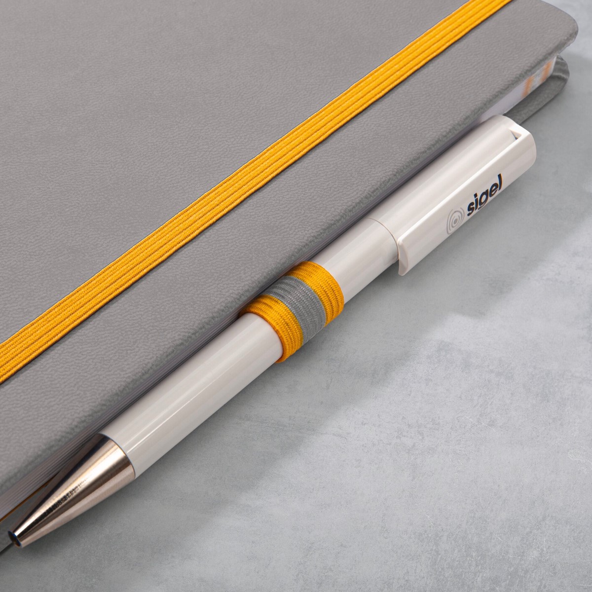 Viele Features: Gummibandverschluss, 2-farbige Stiftschlaufe, 2 Zeichenbänder