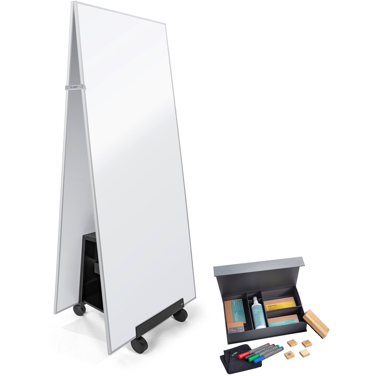 bestehend aus 2x MU020 Whiteboard 900x1800mm, 1x MU055 Stand, 1x BA311 Toolkit für Whiteboard