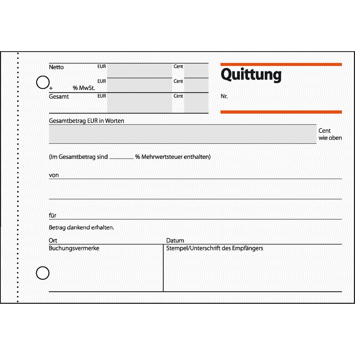 Quittungs-Formular, Format A6 quer, mit MwSt.-Nachweis.