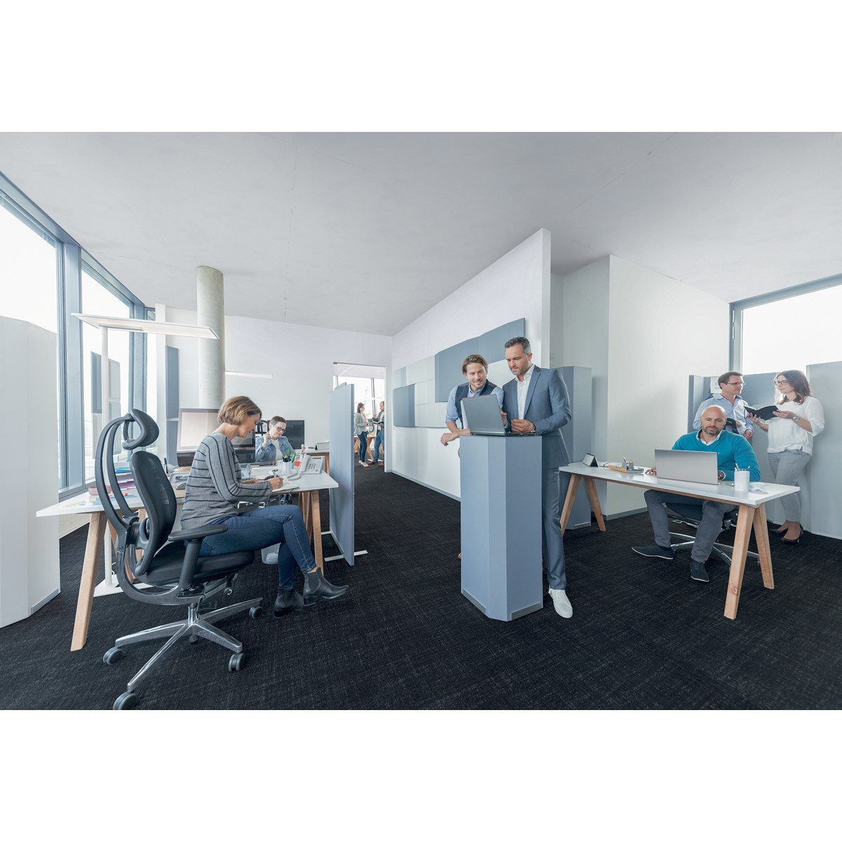 • Designstarker Schallabsorber in formschöner Optik zum flexiblen Nachrüsten von Büros, in 2 harmonischen Farbtönen und 2 Höhen erhältlich, ideal miteinander kombinierbar zur individuellen Raumgestaltung