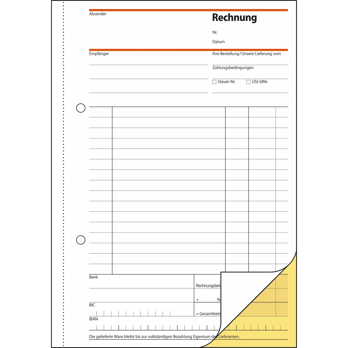 Stets auf dem aktuellen Stand der Gesetzgebung: Rechnungen, A5, 2x 40 Blatt, FSC-zertifiziert. Trotz E-Rechnungspflicht seit 01.01.2025: Rechnungsformulare in Papierform bleiben gültig.