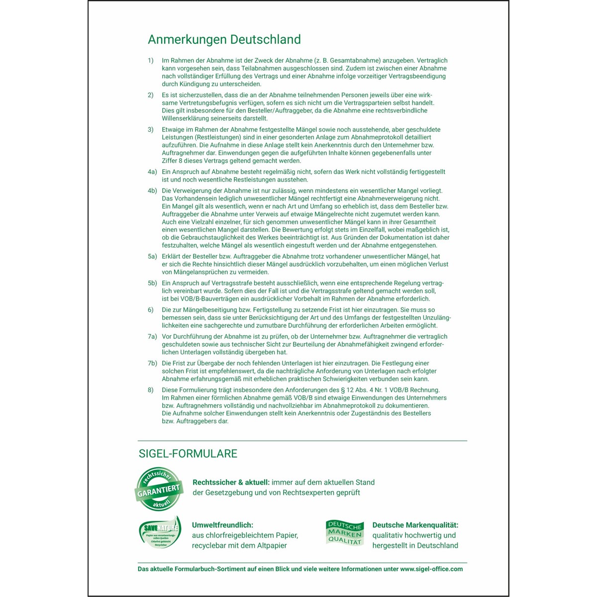 Stets auf dem aktuellen Stand der Gesetzgebung: Bauabnahmeprotokoll, A4, 2x 64 Blatt, FSC-zertifiziert. Geeignet für BGB-, VOB/B-, ABGB- und ÖNORM-Verträge: Beweissicherung und Rechtskonformität bei der Bauabnahme.