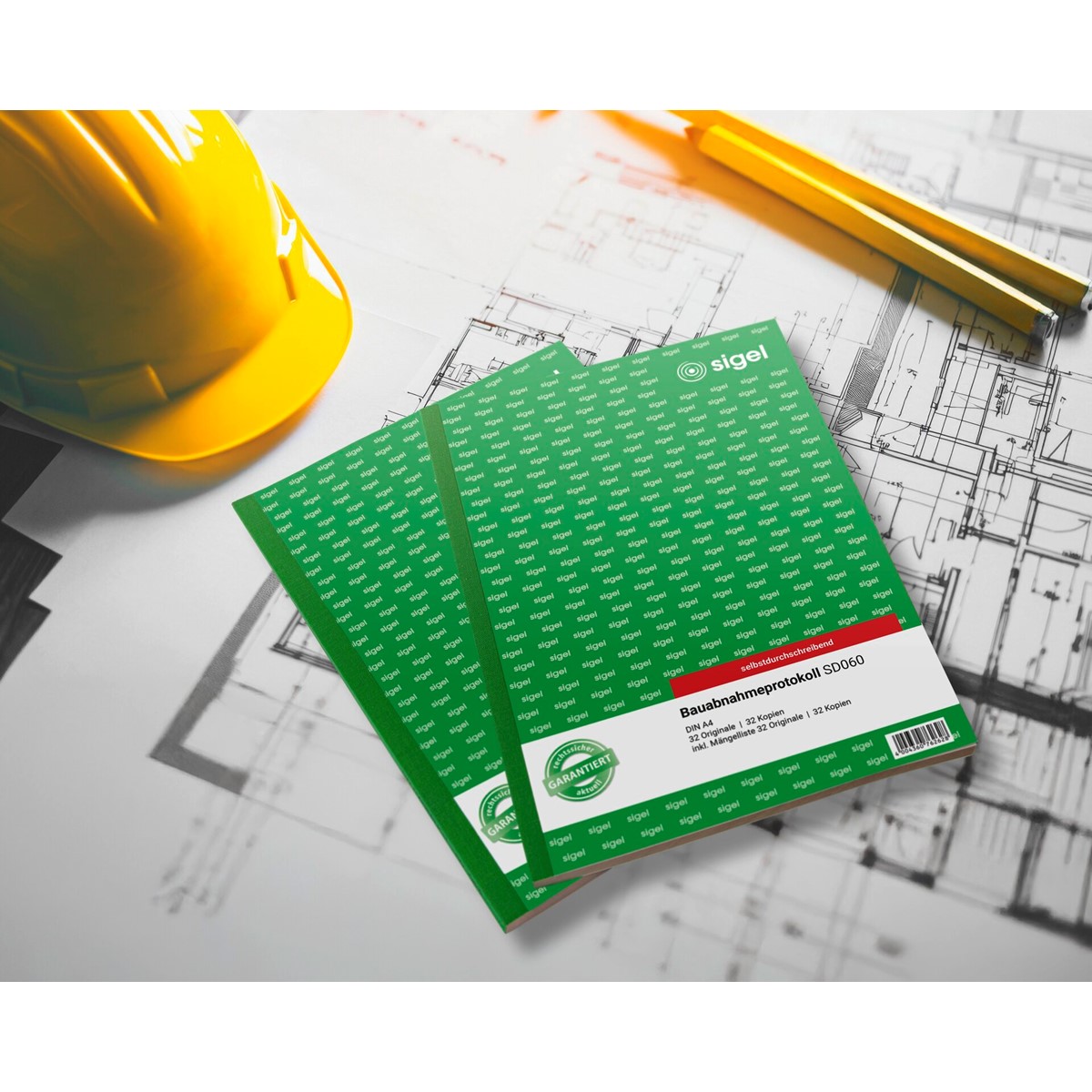 Zweiteiliges Formularbuch für den Baustellenalltag bei Abnahme eines Gewerks oder nach Bau-Teilabschnitten.