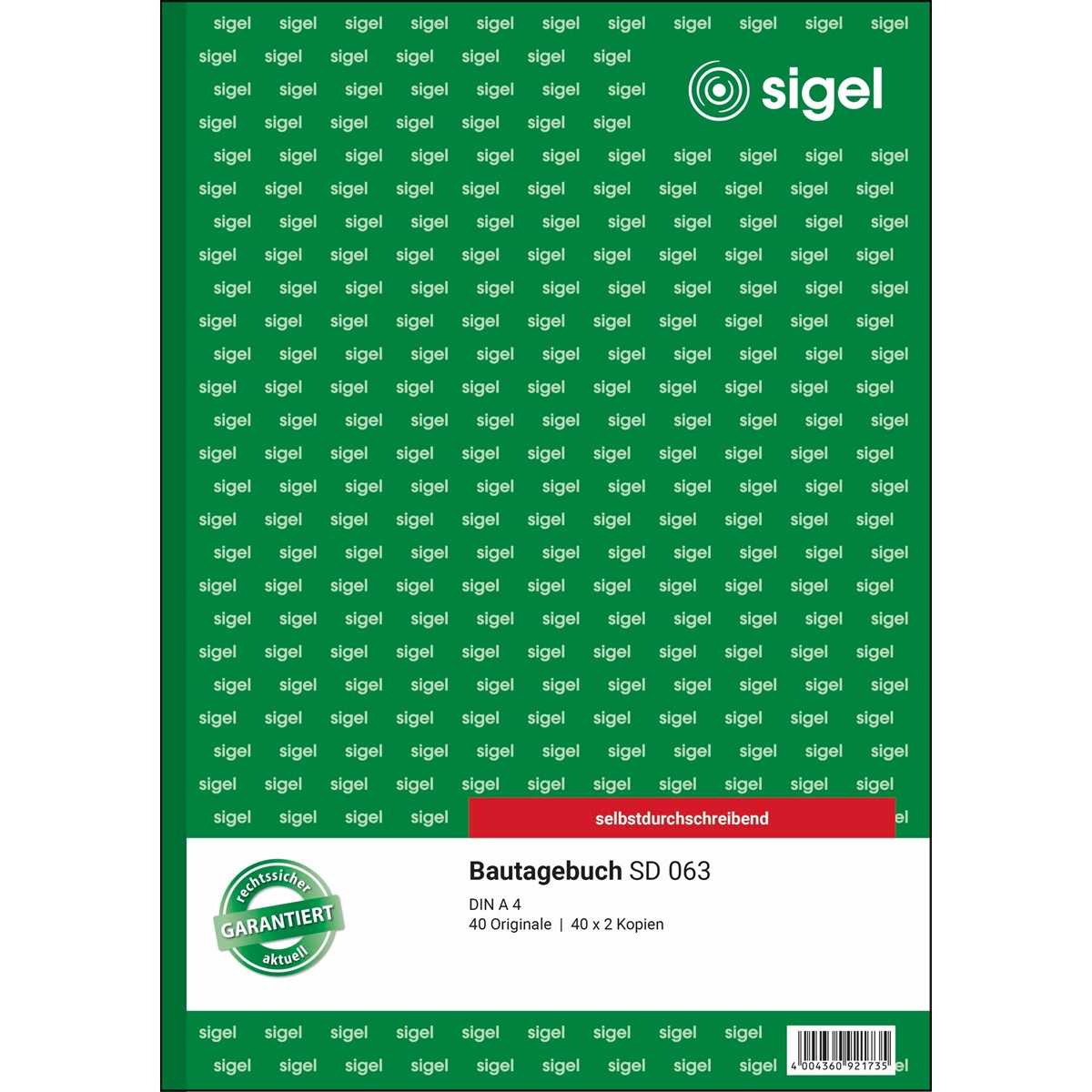 Selbstdurchschreibendes Bautagebuch im Format DIN A4 mit 40 Originalen + 40 x 2 Kopien, inklusive integrierter Schreibunterlage. FSC® zertifiziert, aktuell und rechtssicher. Die erste Kopie ist gelb, die Zweite rosa. Alle Blätter haben eine Abheftlochung und eine ultrafeine Microperforation für ein schnelles und sauberes Heraustrennen. Das Bautagebuch dient zum genauen Nachweis ausgeführter Bauleistungen, zur exakten Dokumentation von Witterung, Arbeiteranzahl, Arbeitsstunden und Leistungsergebnisse und entspricht den Anforderungen der Baubehörden. Eine Sicherheitsbindung macht das Formularbuch besonders stabil und haltbar.