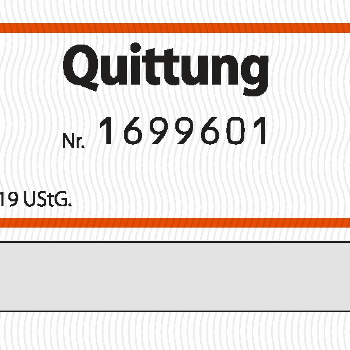 Selbstdurchschreibendes Quittungsformular inkl. MwSt. im Format DIN A6 quer. Bruttobetrag, Steuersatz und Steuerbetrag werden aufgeführt. Die vorgedruckte fortlaufende 7stellige Nummer auf Original und Kopie dient der eindeutigen Identifizierung. Inhalt 50 Originale + 50 gelbe Kopien, inklusive integrierter Schreibunterlage. FSC® zertifiziert, aktuell und rechtssicher, mit fälschungssicherem Dokumentendruck auf jedem Originalblatt. Alle Blätter mit Abheftlochung und ultrafeiner Microperforation für ein schnelles und sauberes Heraustrennen. Zusätzlich mit einer übersichtlichen Tabelle zum Eintragen aller ausgestellten Quittungen. Eine Sicherheitsbindung macht das Formularbuch besonders stabil und haltbar.