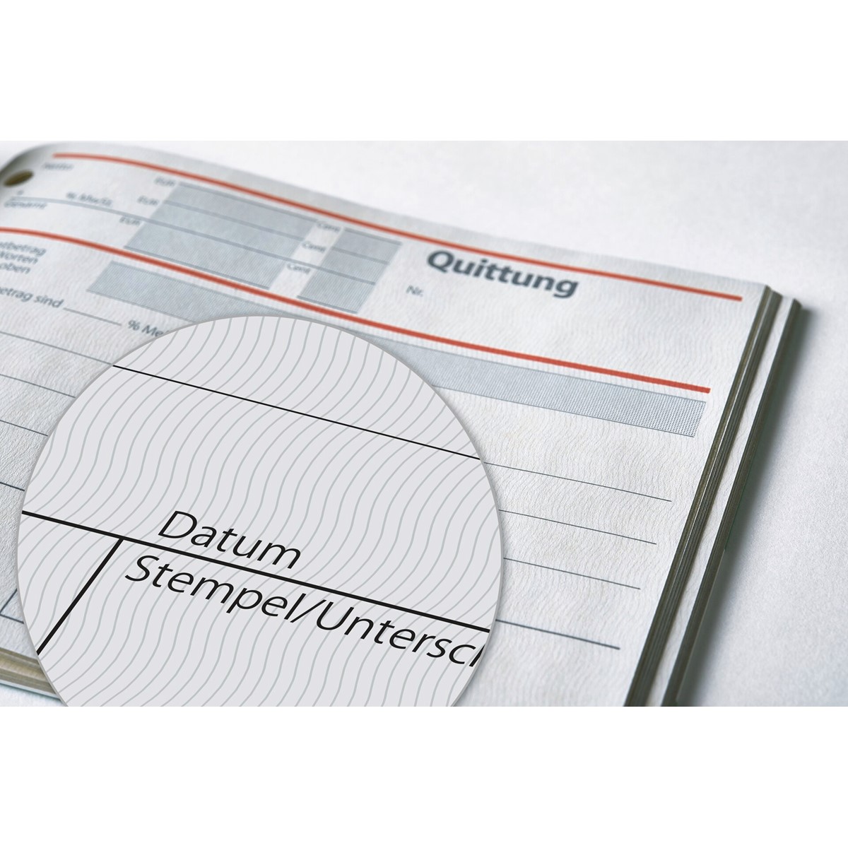 Besonders haltbare Spezial-Rückenleimung, integrierte Schreibunterlage mit praktischer Übersichtstabelle für alle ausgestellten Quittungen