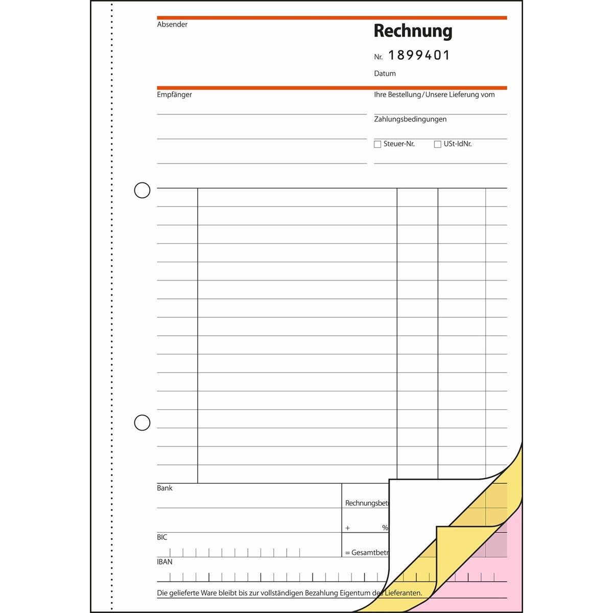 Stets auf dem aktuellen Stand der Gesetzgebung: Rechnungen, A5, 3x 50 Blatt, FSC-zertifiziert. Trotz E-Rechnungspflicht seit 01.01.2025: Rechnungsformulare in Papierform bleiben gültig.