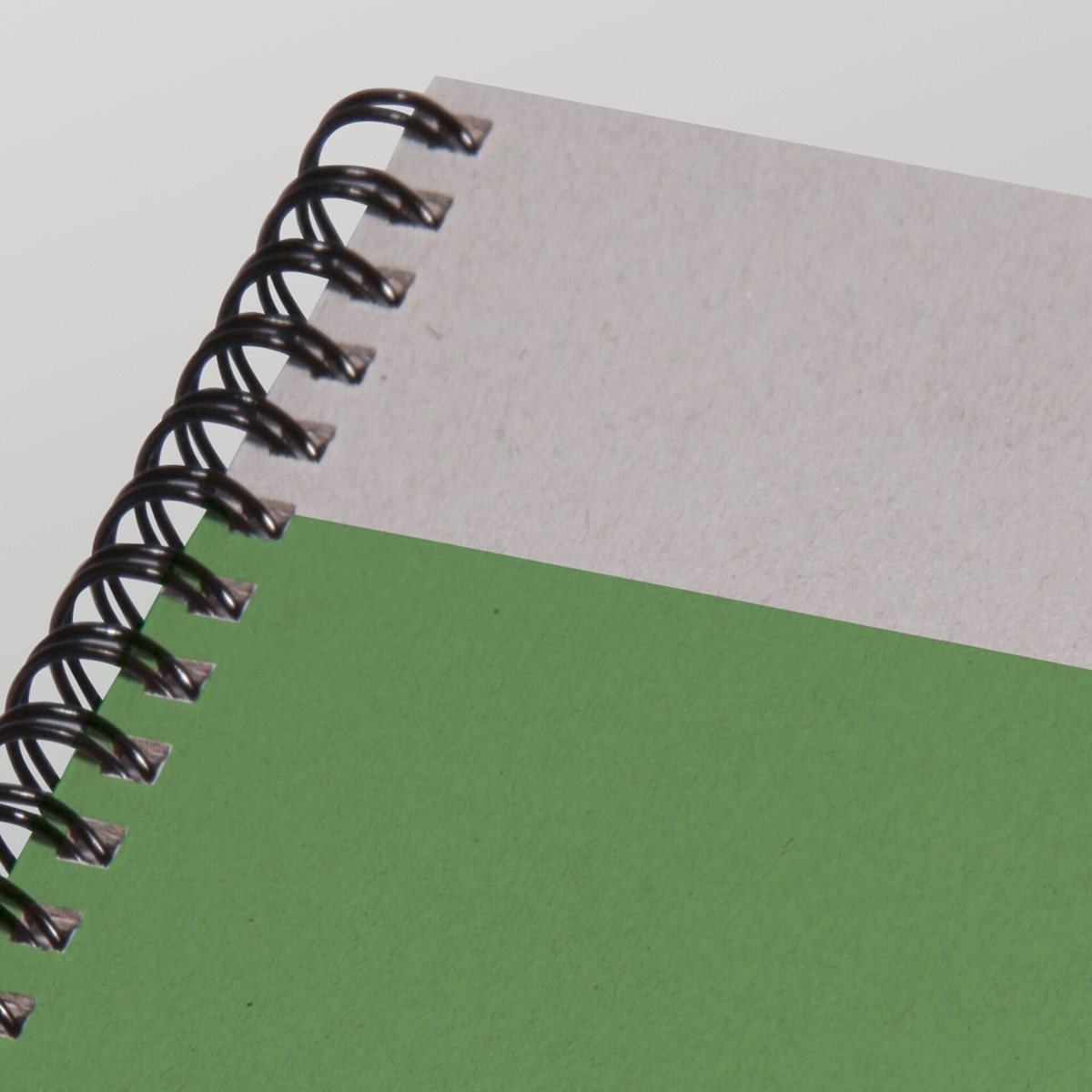 Spiral-Notizbuch mit Softcover in grün/grau, Format A5 (15,60 x 21 x 1,80 cm), blanko, mit 160 Seiten.
