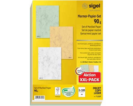 Mit schönem Struktur-Motiv und ruck-zuck bedruckt: Marmor-Papier-Set, sandbraun, pastellgrün, grau, Motiv/Druck beidseitig, im Format A4 (Feinpapier, 90 g/m², 300 Blatt).