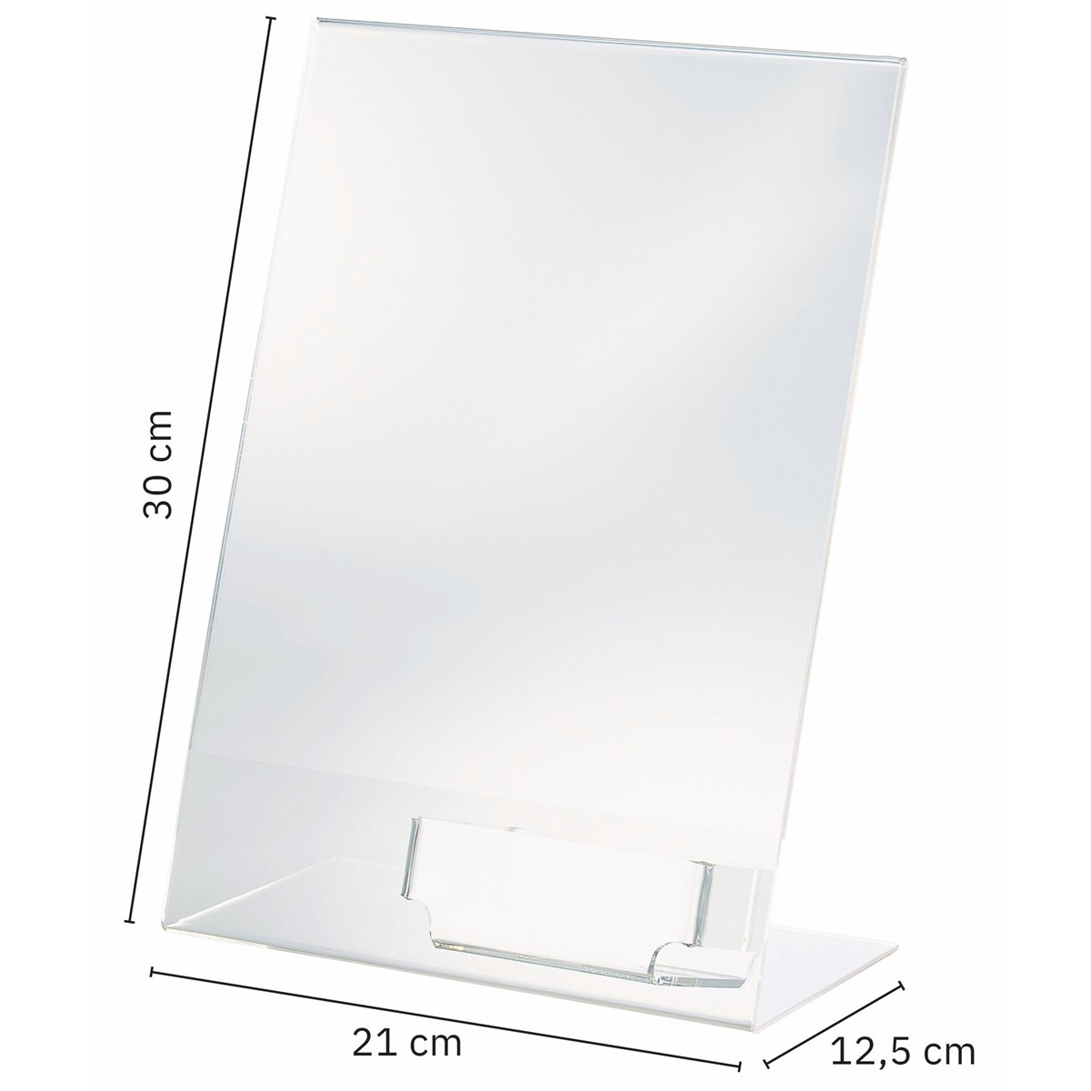 • Tischaufsteller, schräg, einseitige Präsentation, passend für das Format 210 x 297 mm, Acryl (PMMA), glasklar.