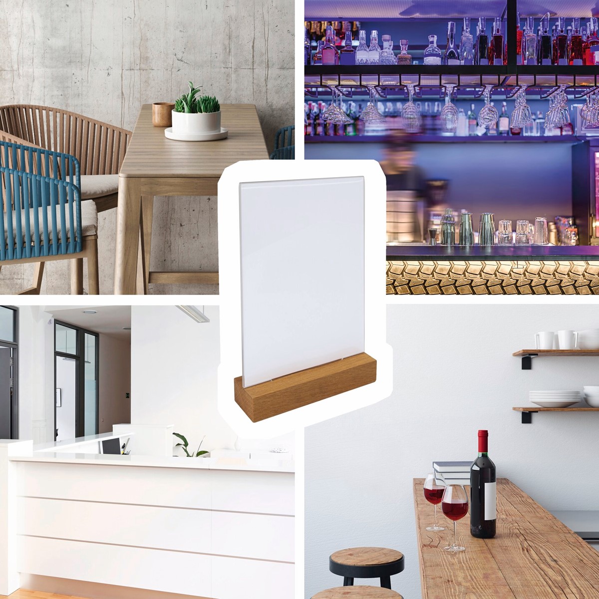 • Der Tischaufsteller von SIGEL setzt Informationen perfekt in Szene und ist ein attraktiver Blickfang auf Theken, Tischen, Messen und in Ausstellungsräumen.