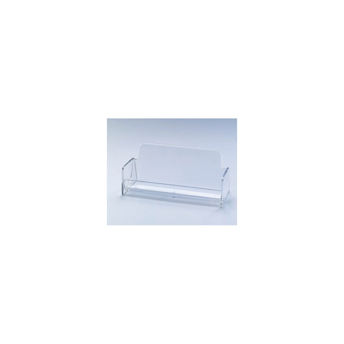 Glasklarer Visitenkartenständer mit einem Fach aus Hartplastik.