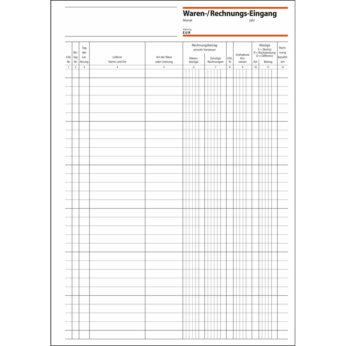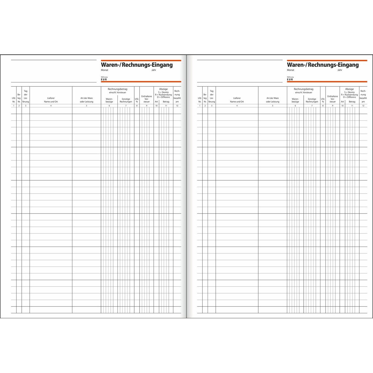Waren-/Rechnungs-Eingangsbuch, entspricht den Vorschriften der Wareneingangs-Verordnung.