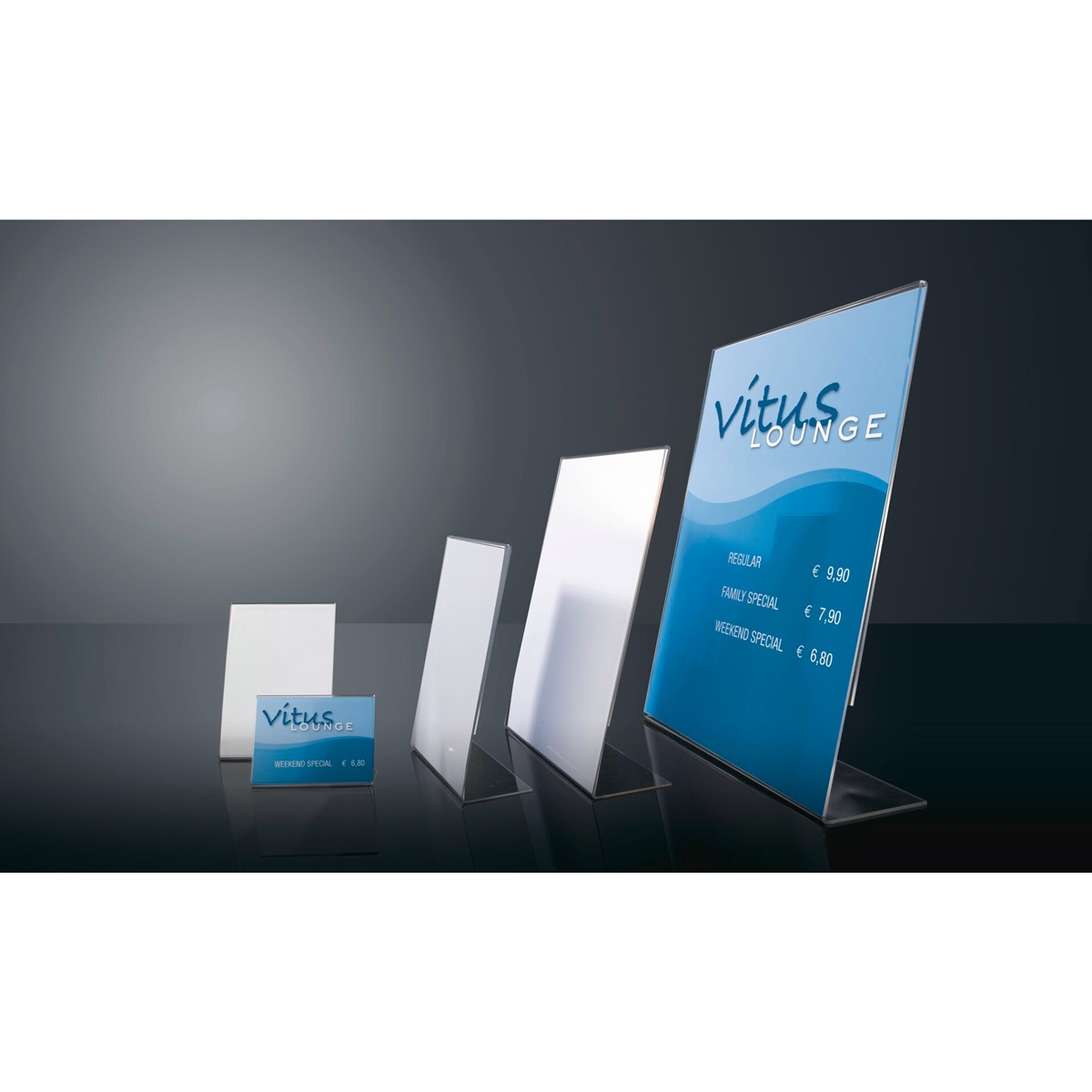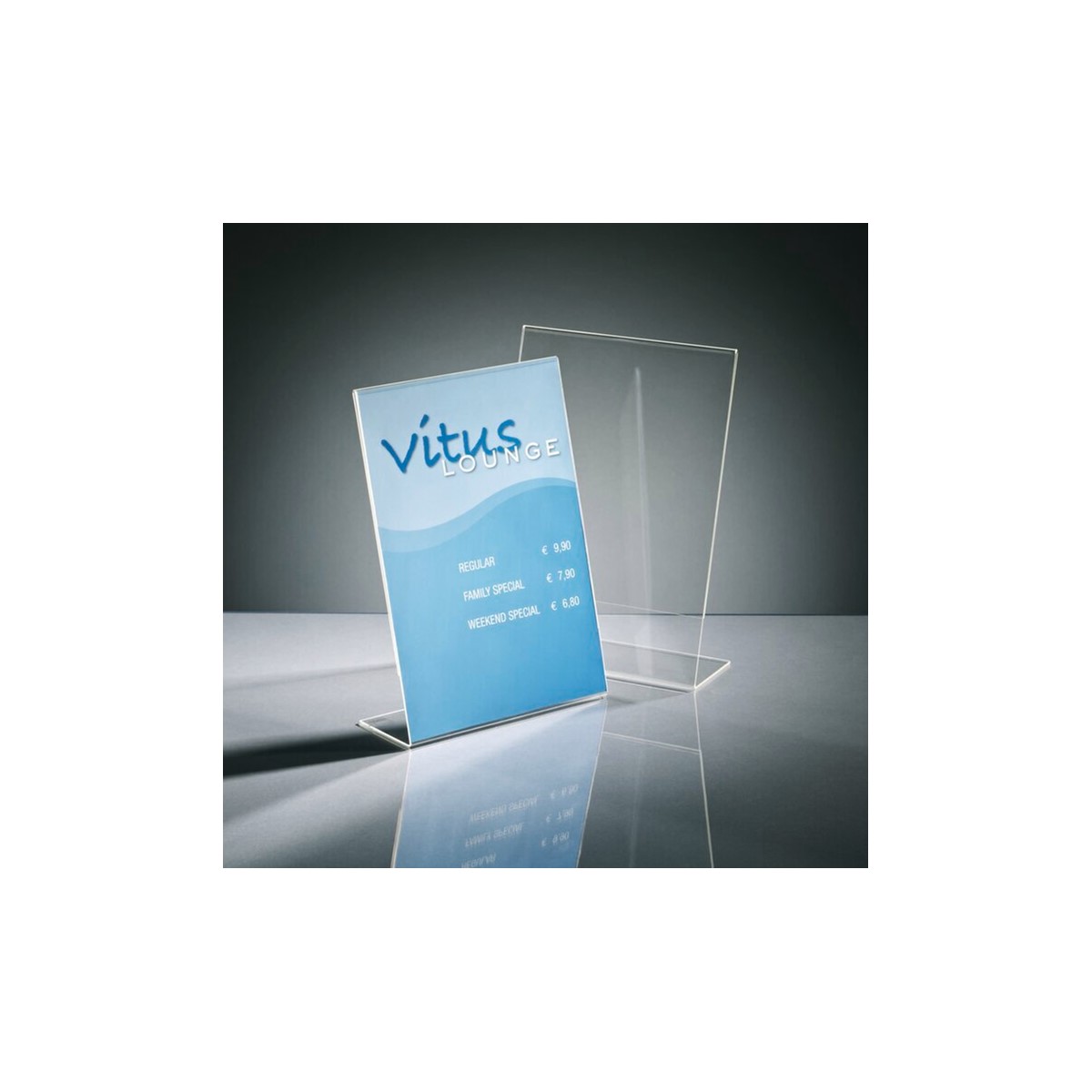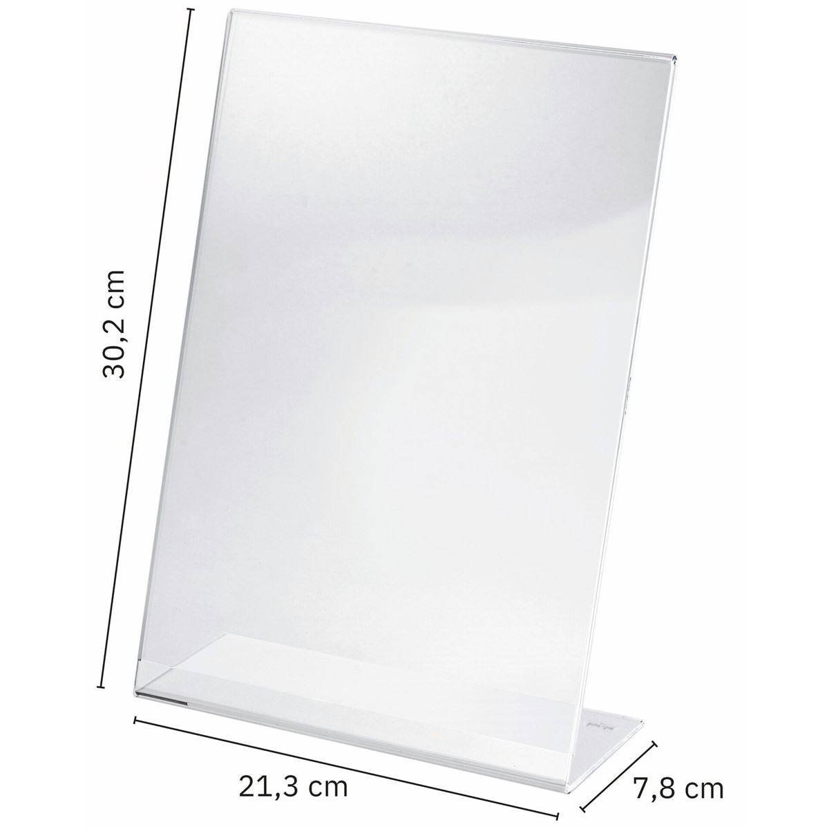 Tischaufsteller, schräg, einseitige Präsentation, passend für das Format 210 x 297 mm, Acryl (PMMA), glasklar.